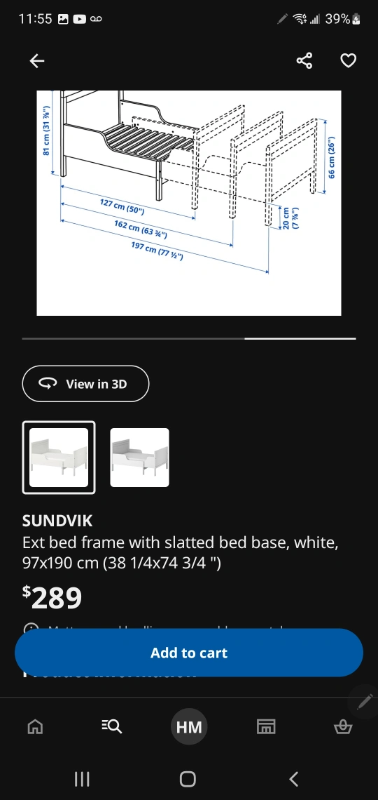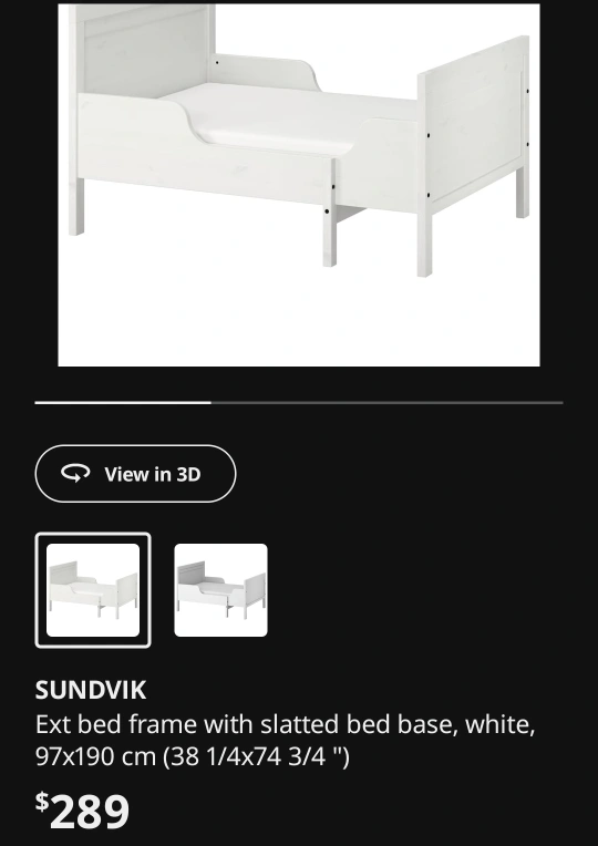 IKEA Toddler Bed Frame 165 x 77 x 57cm (65" x 30" x 22")