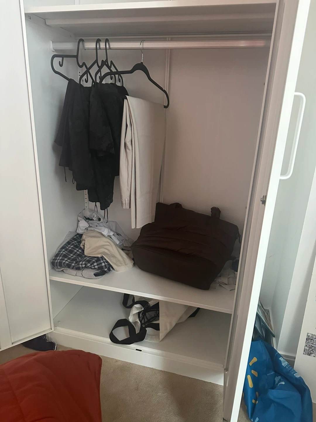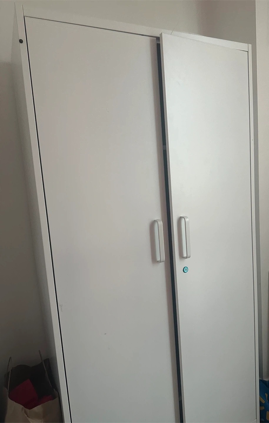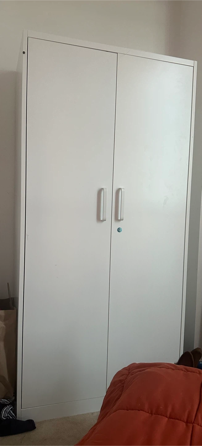 Selling a white wardrobe. It's in great condition and ready to organize your clothes and belongings. Perfect for adding storage space to any room! Little dent on the top From IKEA