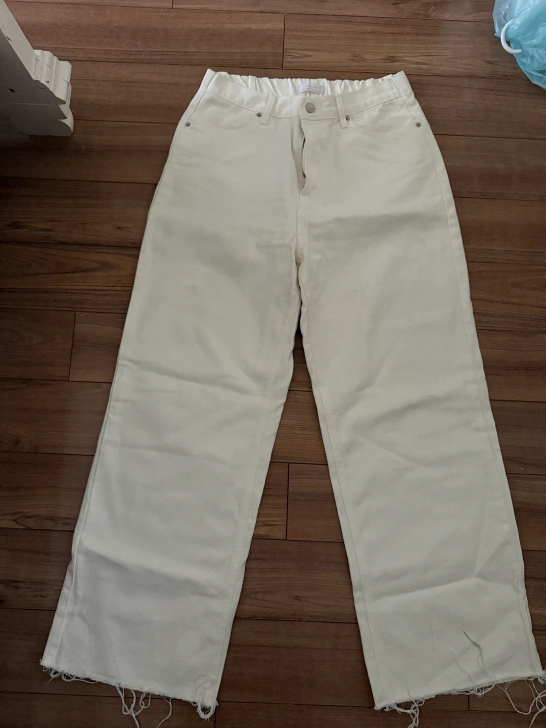 Selling a pair of white wide leg jeans. Size medium, Oak and Fort jeans