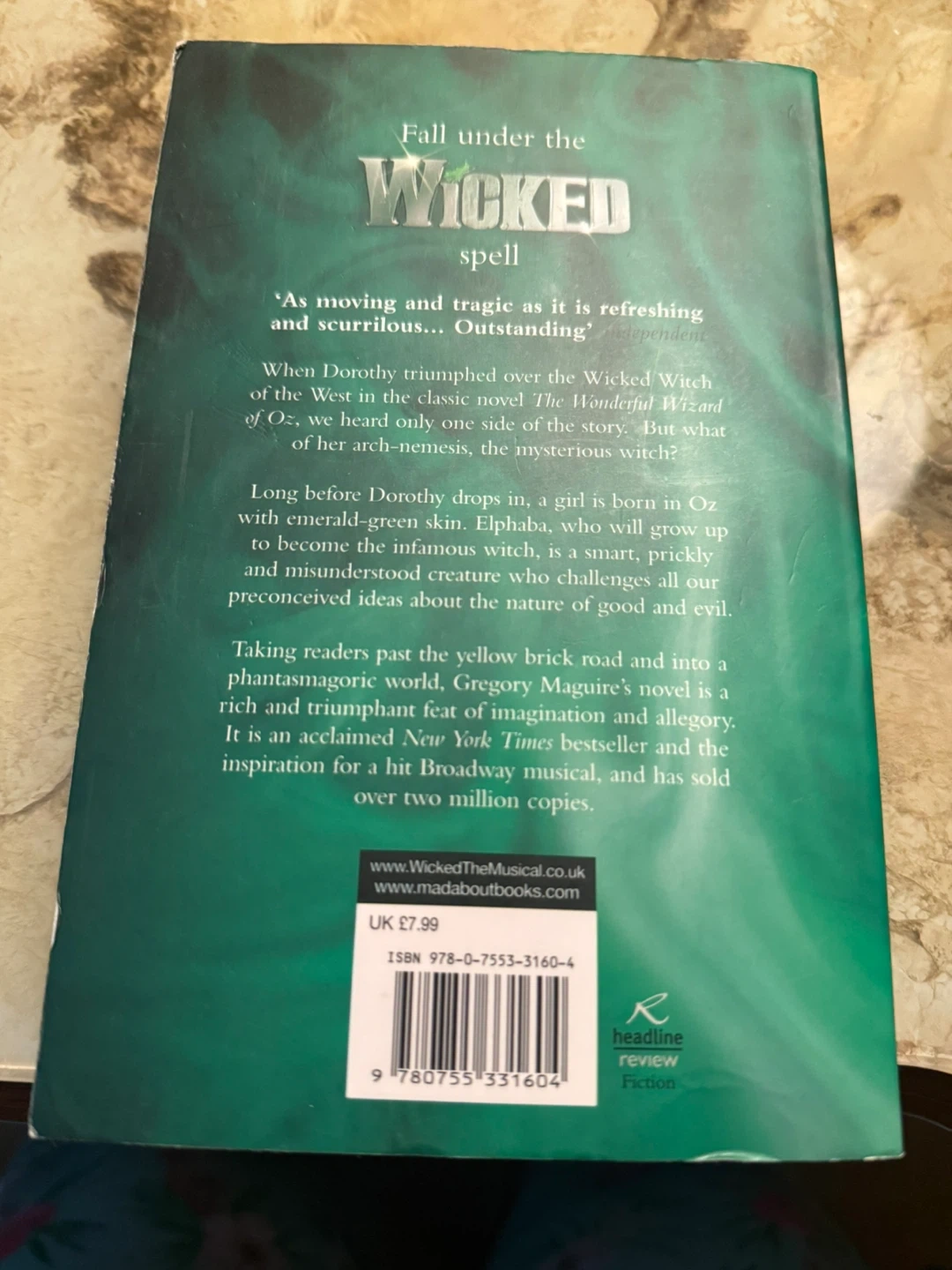Selling the book Wicked by Gregory Maguire! It's a novel that tells the story of the Wicked Witch of the West from the Wizard of Oz. A great read for fiction lovers!