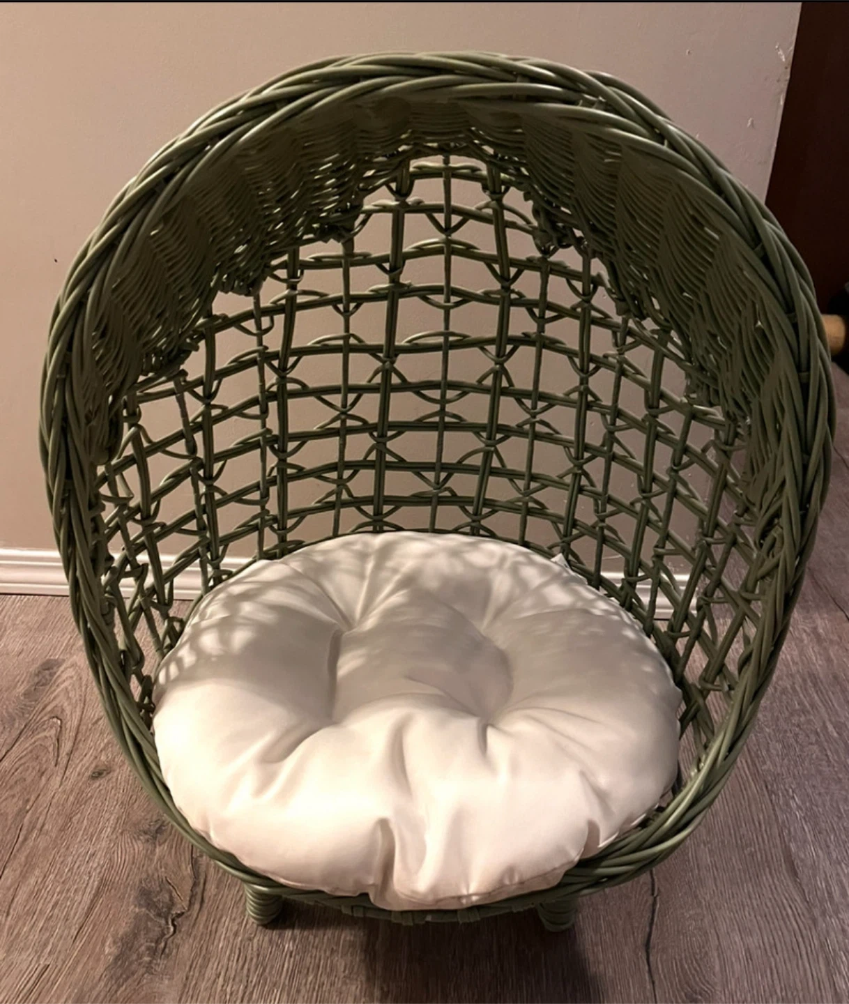 Looking to give your furry friend a cozy and stylish retreat? This wicker pet bed cave is perfect! It comes with a comfy cushion inside, making it a snug hideaway for your cat or small dog. The woven design adds a touch of charm to any room, and your pet will love having their own little sanctuary. My cat didn’t take an interest in the chair so I’m selling it.