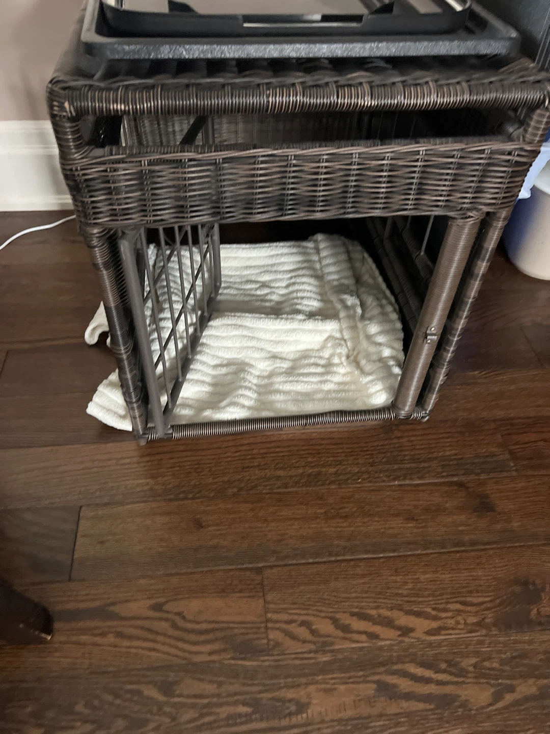 Selling a wicker pet crate in great condition! It's a stylish and cozy option for your furry friend. Perfect for dogs or cats, it provides a safe and comfortable space for them to relax