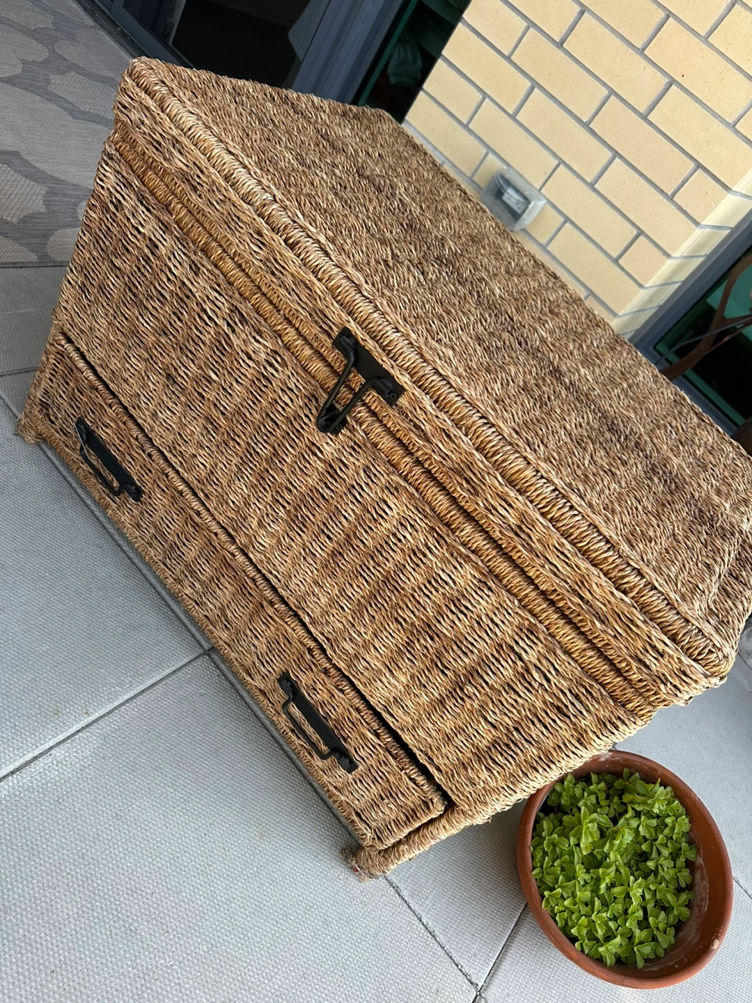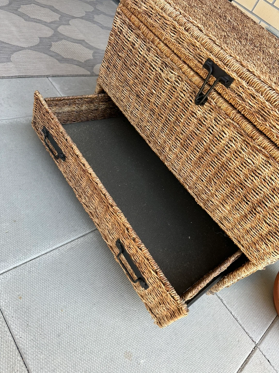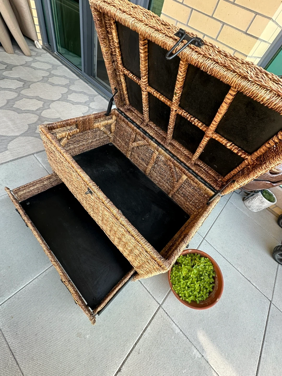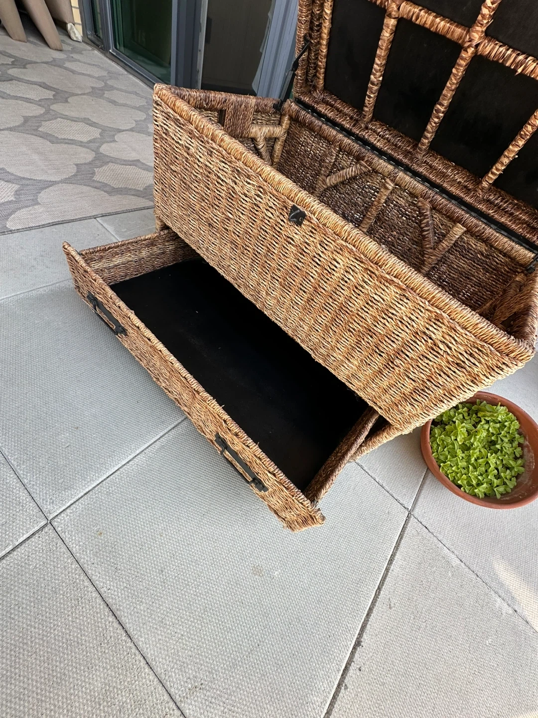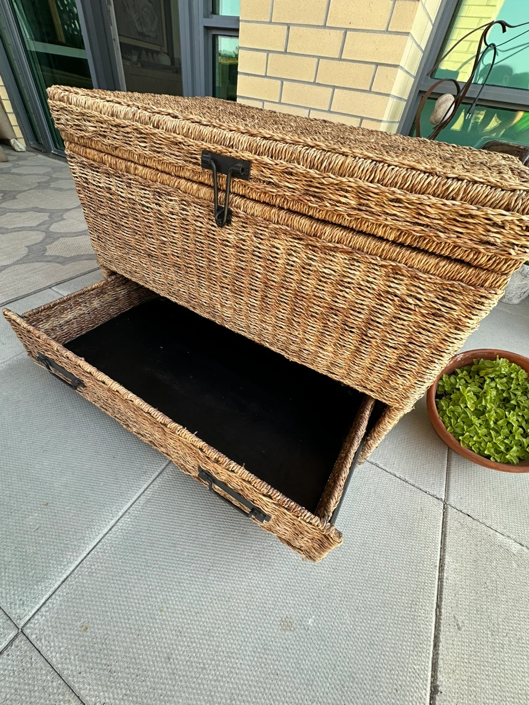 Wicker storage trunk Woven wicker construction Easy flip top lid that stays open while you use it Extra bottom drawer for extra storage Wrought iron handles, drawer pulls and hinge Excellent condition Dimensions: 3 feet Width 21 inches Depth 25 inches Height Retails for over $600 Pick up Ninth line and Hoover Park Serious buyers only please Selling a wicker storage trunk that has two drawers. It's perfect for adding a rustic touch to any room while providing extra storage space. The trunk is in good condition and ready for a new home