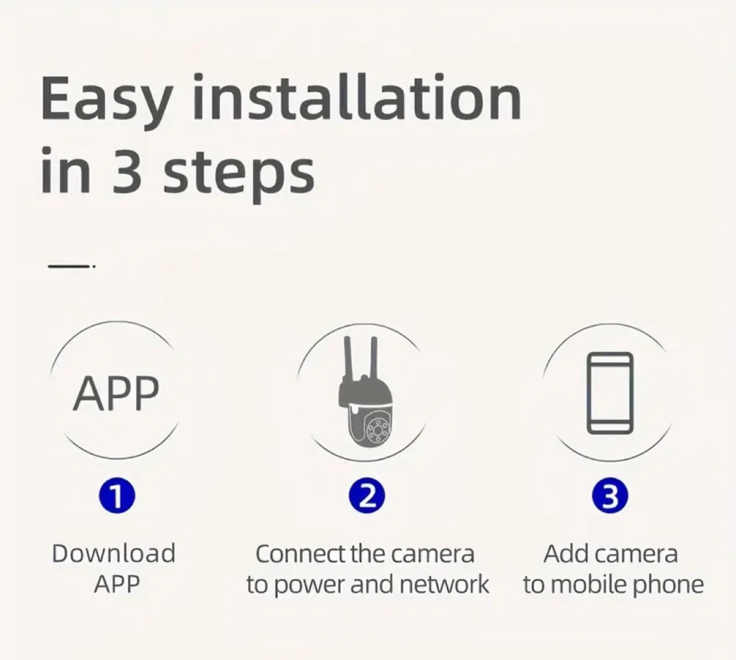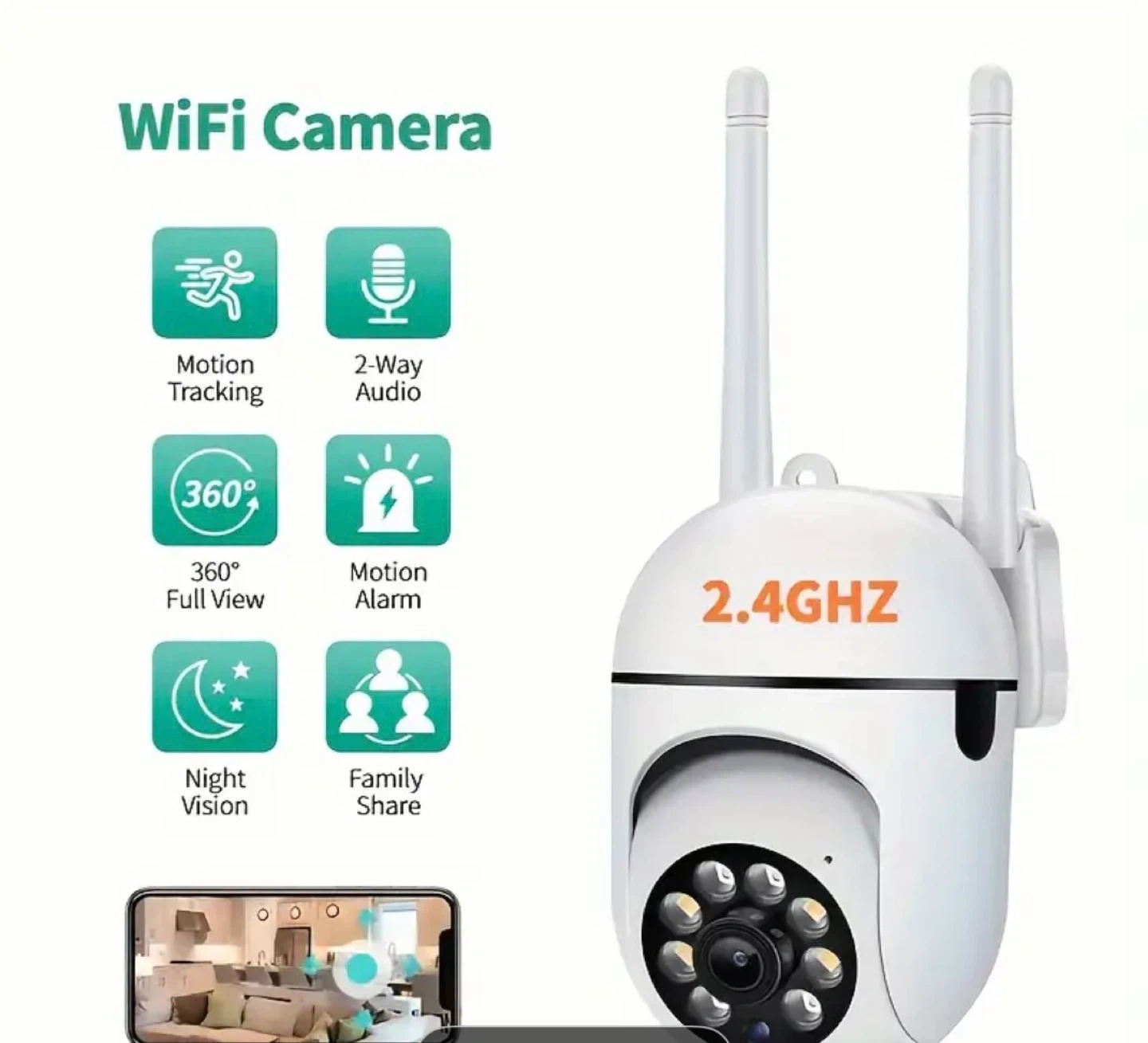 This WiFi camera has great features like motion tracking, 2-way audio, and night vision! It offers a 360° full view and motion alarm. Easy installation in 3 steps: download the app, connect the camera to power and network, and add the camera to your mobile phone