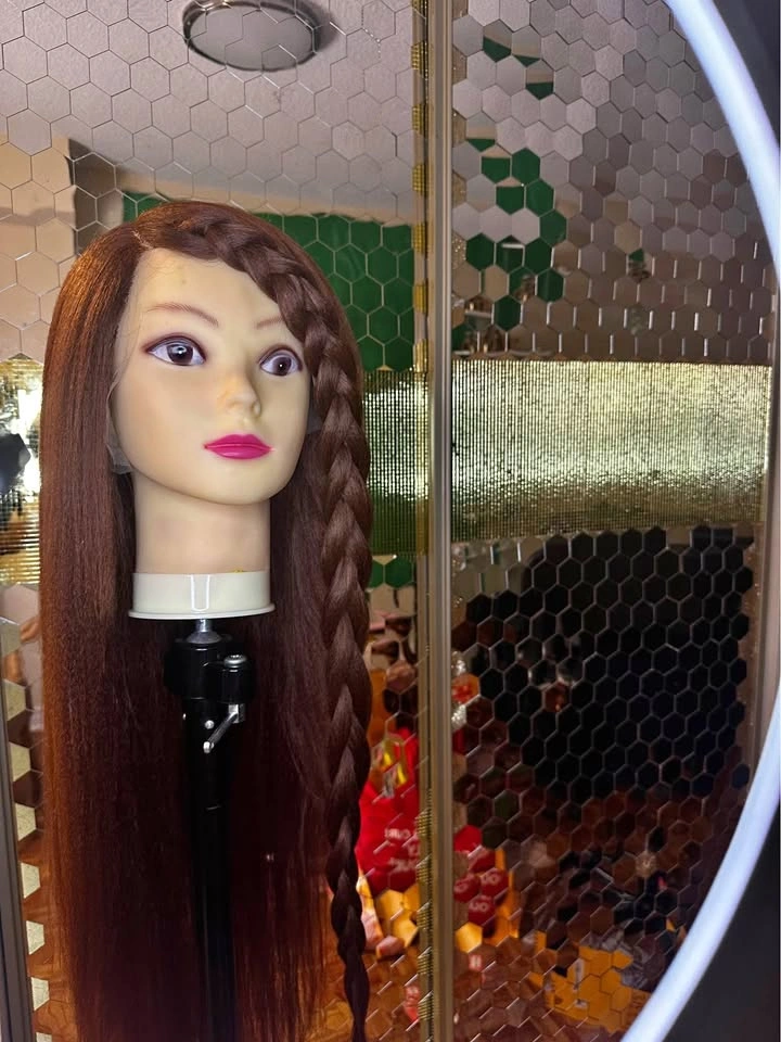 26 inch wig with realistic lace part and brunette hair perfect any occasion. One side is braided to show versatility. Comfortable fit with a sleek finish for an Ideal for quick glam, costume look, or special events.