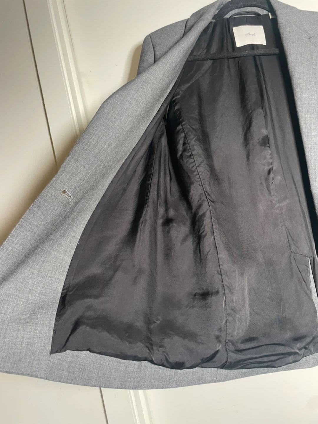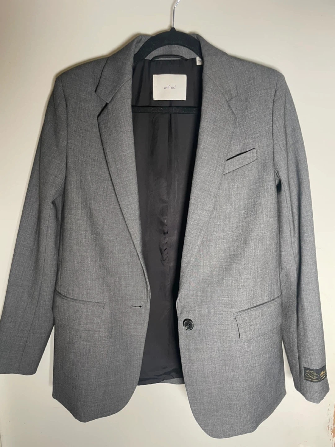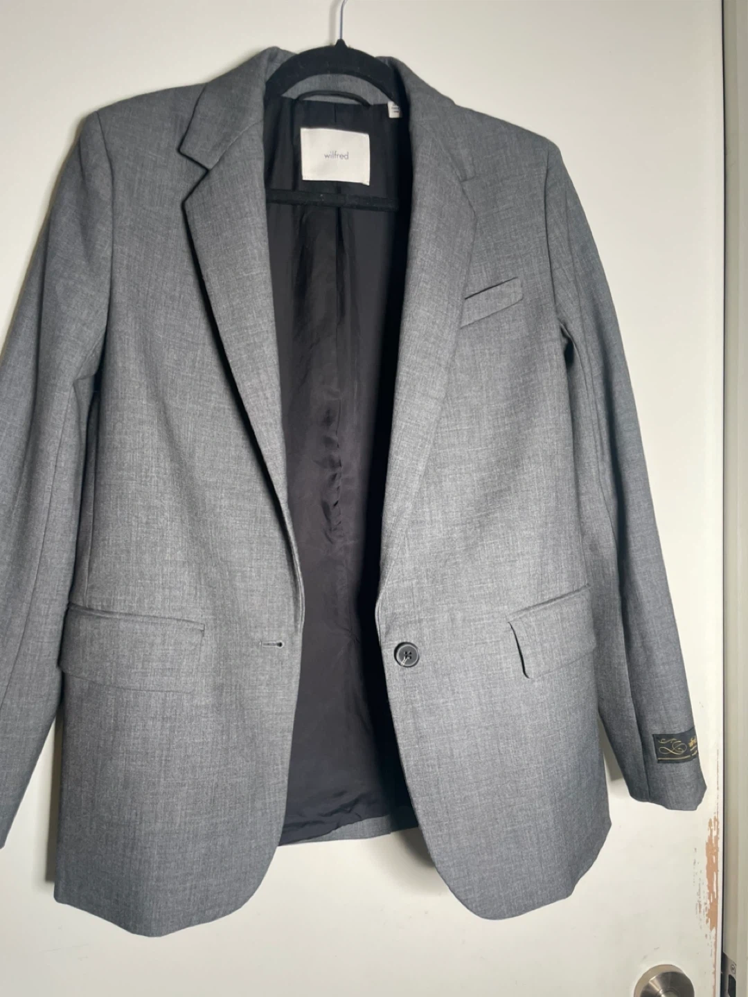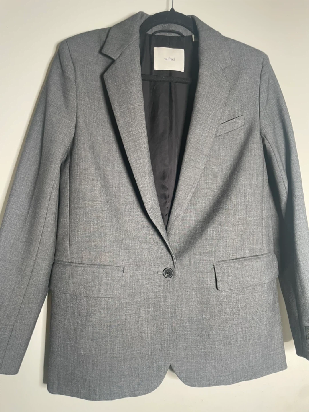 Selling a Wilfred handcrafted blazer in size 2XS. It's a stylish grey colour. Perfect for any occasion!