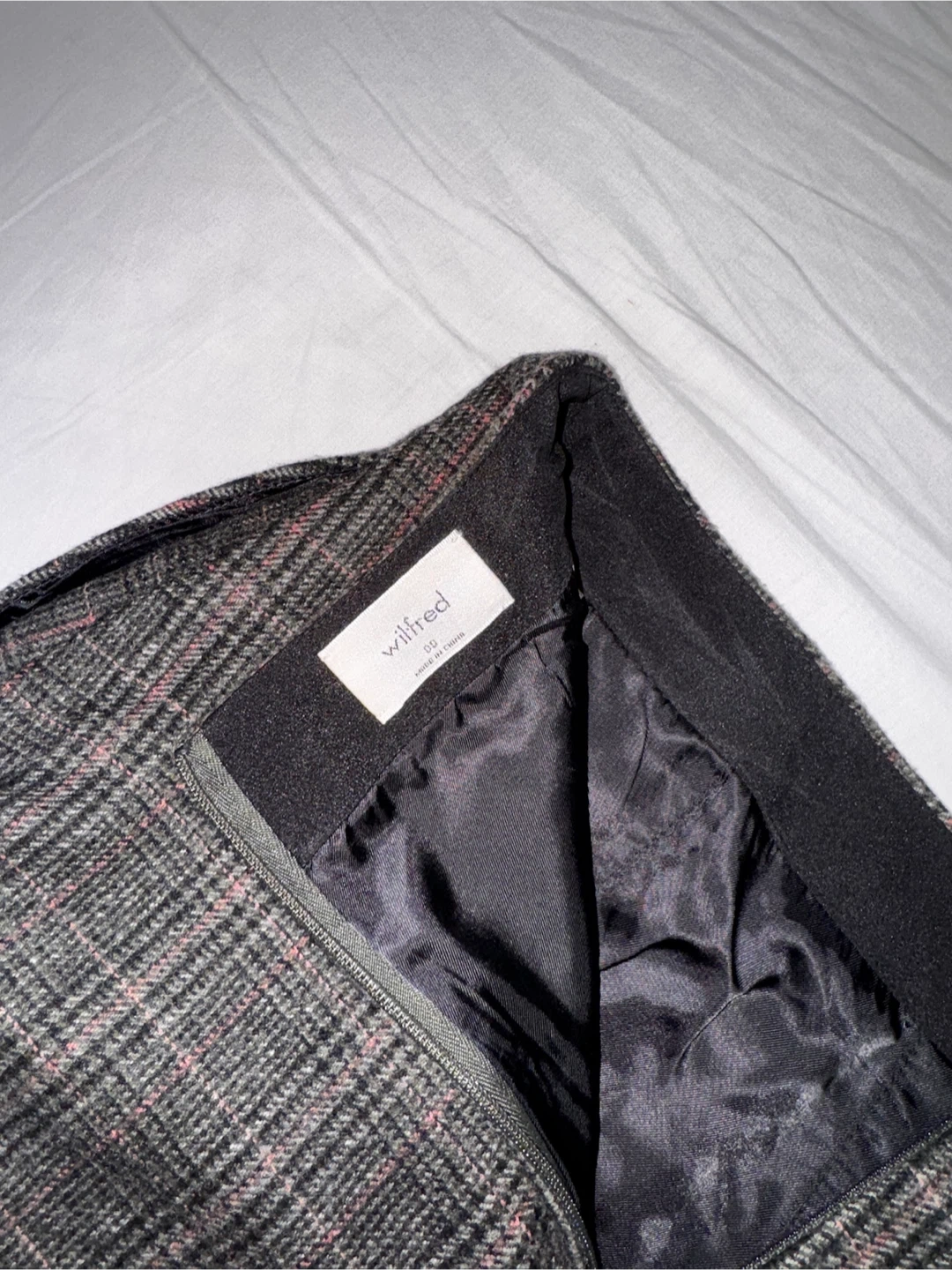 Selling a cute Wilfred mini skirt in a plaid pattern! It's a size 00 and in great condition. Perfect for adding a touch of style to your fall wardrobe