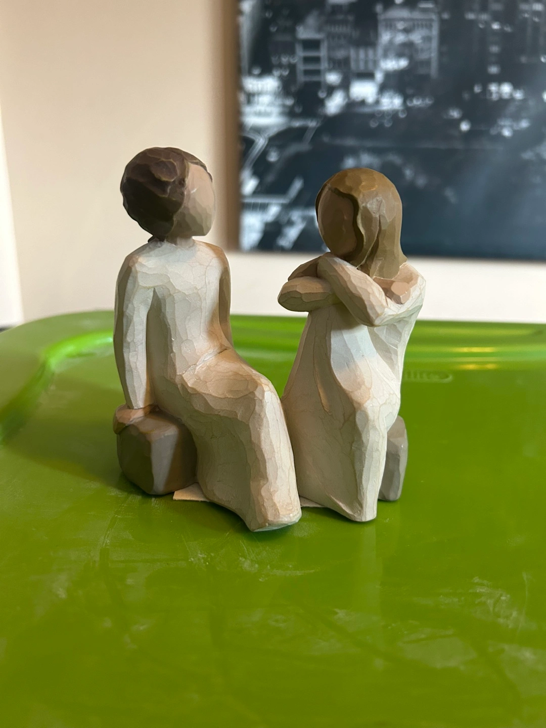 A sweet Willow Tree figurine called 'Heart and Soul'! It depicts two figures seated together. The base reads: Open hearts, sharing souls, trusted friends