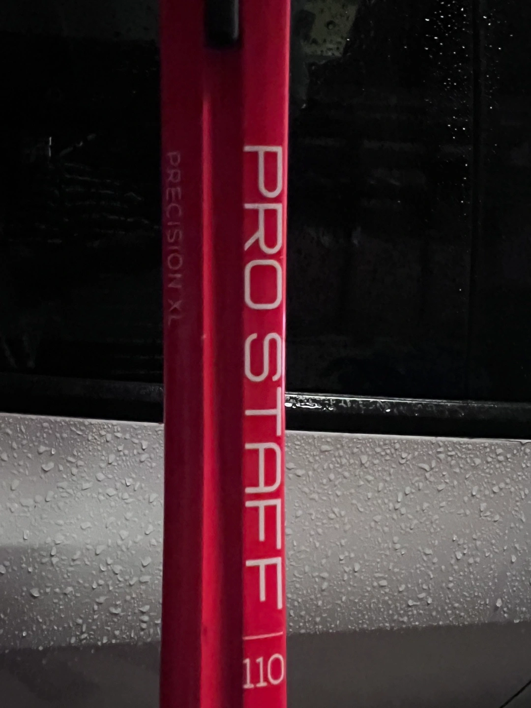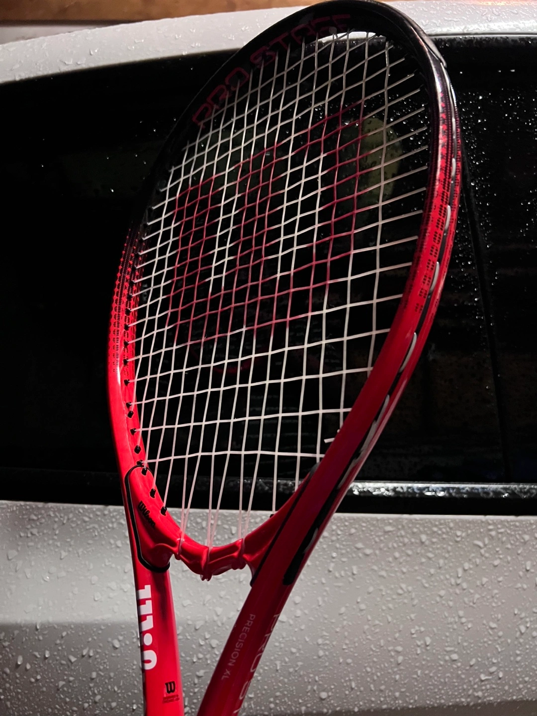 Used Wilson Pro Staff 110 tennis racquet. Red and black. Perfect condition. Grip still in good shape. Provides good spin and power.