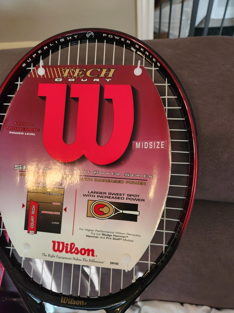 Selling a Wilson SPS Superlight Power Series Tech Court Midsize tennis racquet. It has a larger sweet spot with increased power. Ideal for higher performance Wilson racquets, try our Hammer's, Hammer and Pro Staff models. It's in great condition and ready for the court!