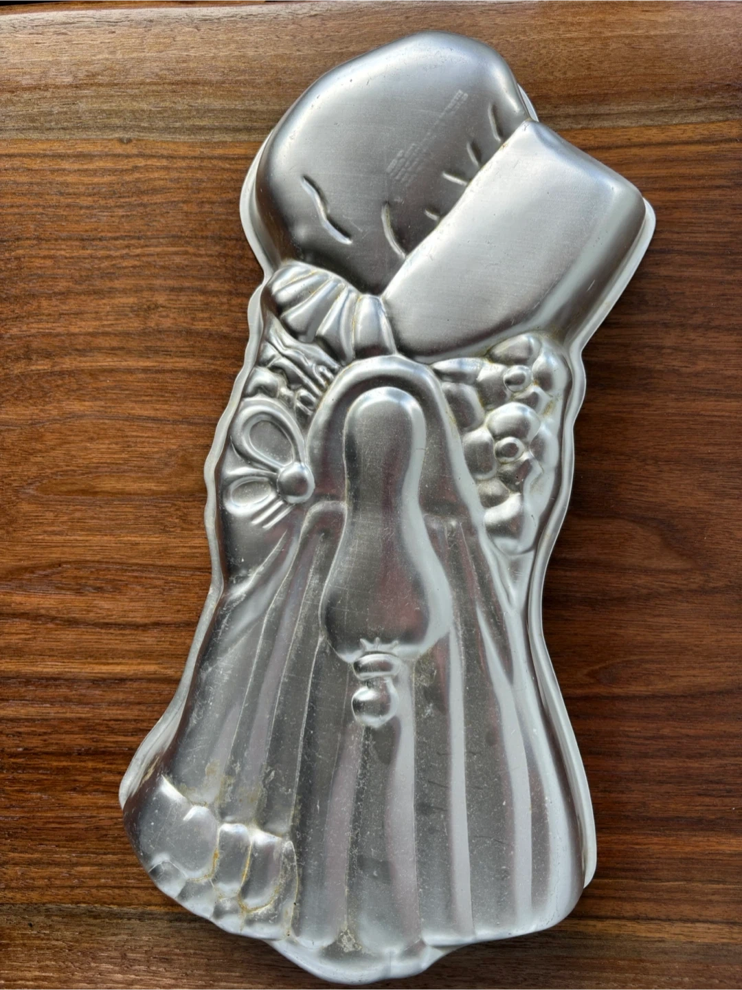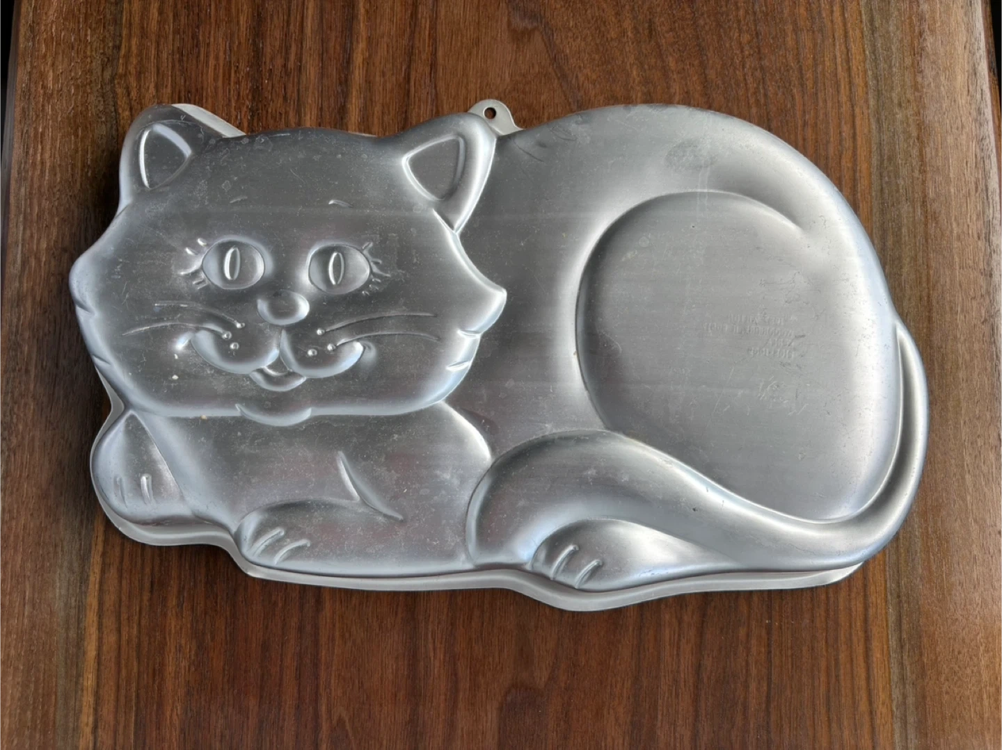 Selling a collection of Wilton cake pans in various fun shapes! Great for baking themed cakes for birthdays or special occasions. They each take one cake batter. Shapes include a girl, stocking, cat, copper butterfly, carriage, graduation cap, and lamb. The Hello Kitty is free if you purchase one of the others as it’s heavily used. Price is per pan or $50 for all of them. I have an upright train, a monkey, and another butterfly one that are available for rent… $1/day