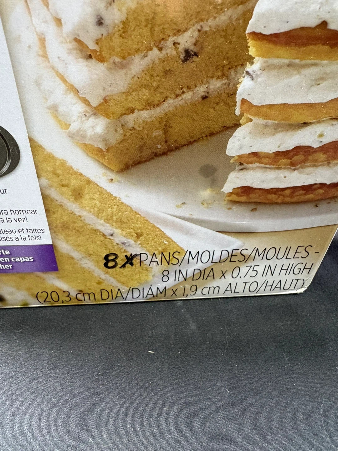 🥕like new Wilton Easy Layers Cake Pan Set - 8 Pieces Get ready to bake some beautiful layered cakes with this Wilton Easy Layers Cake Pan Set! This set includes 8 non-stick pans, each 8 inches in diameter and 0.75 inches high. The box is included, and it even shows how one cake mix makes four perfect layers. Easy to use and clean, these pans will help you create a classic cake filled with whipped cream or colorful rainbow effects! Recipes are included in the box Measurements in last couple of pics $10 Pick up Victoria Park & O’Connor area
