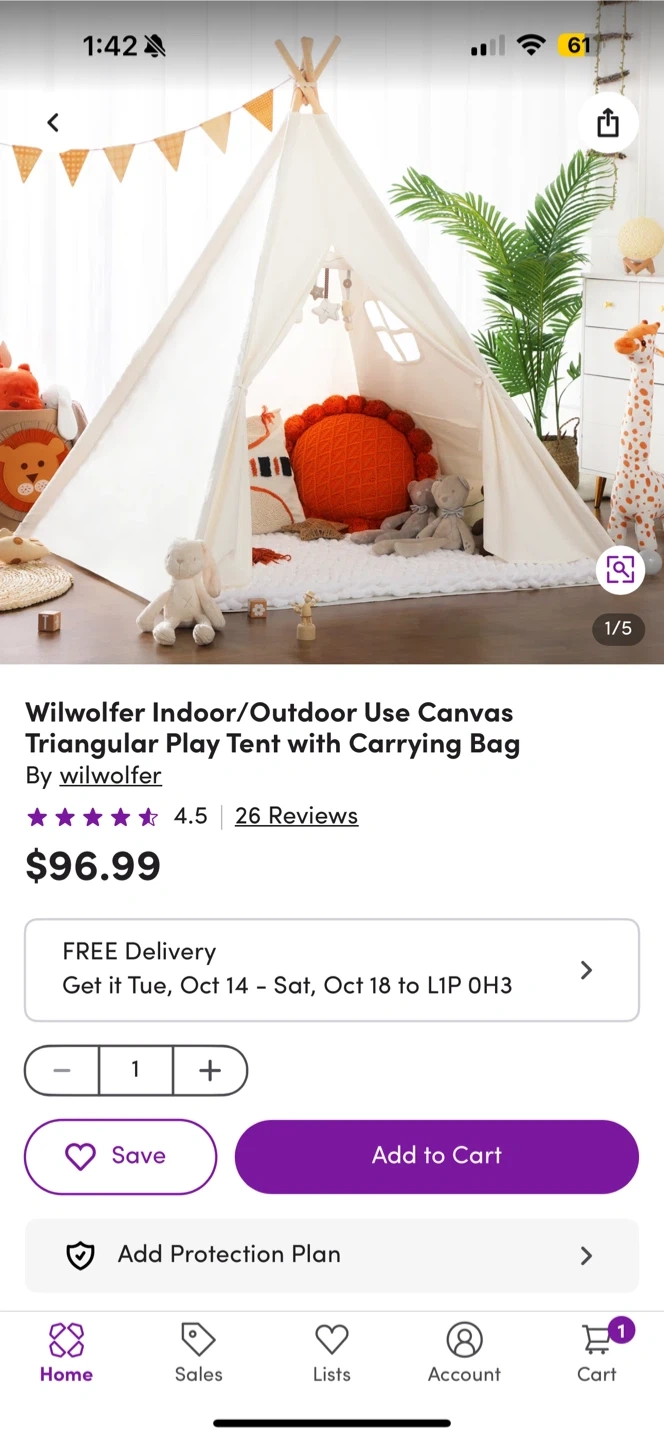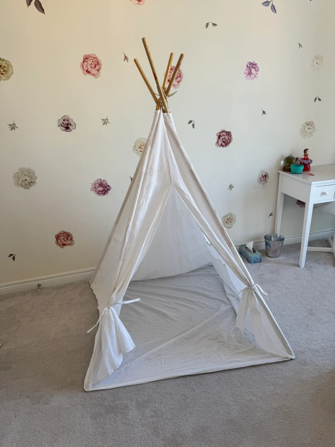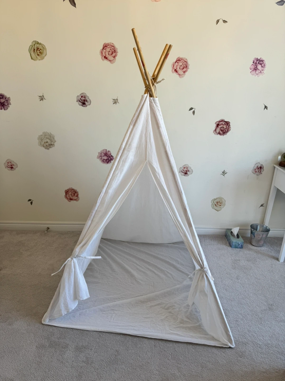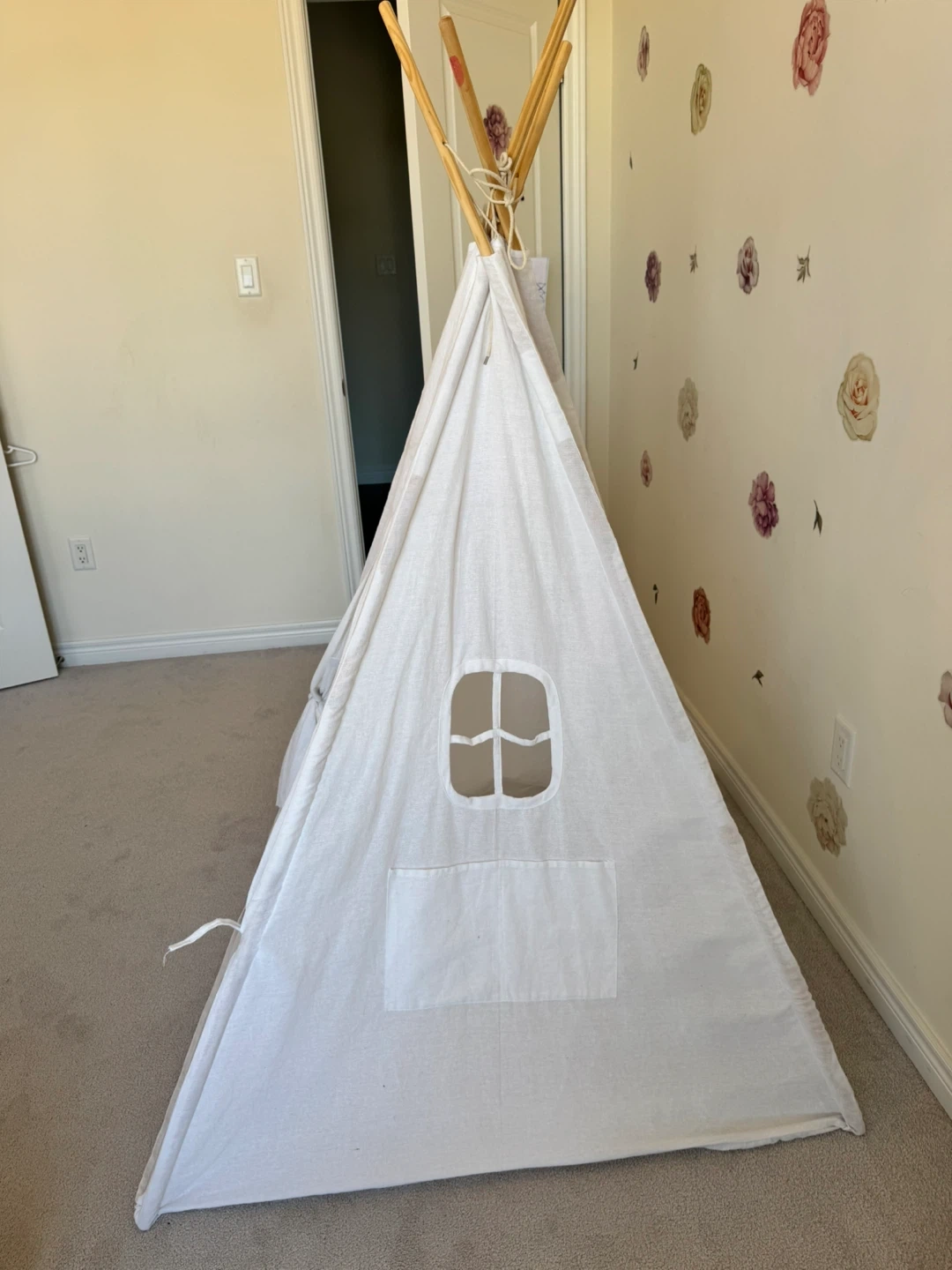 This is a Wilwolfer indoor/outdoor canvas triangular play tent! It's perfect for kids to play in and can be used both inside and outside. Originally bought for $96.99.