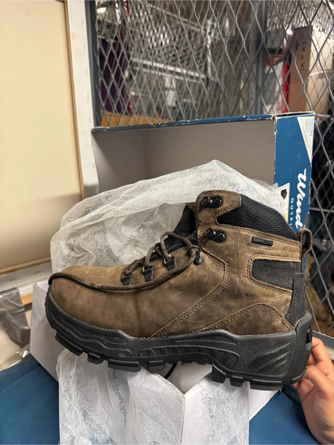 Selling a pair of Wind River Outfit Co. boots in men's size 9. These boots are waterproof and come with the original box. Ft with stud switch at bottom for better grip in icy weather, super comfy from inside for longer use Only got worn few times, almost new condition. and ready for your next winter adventure!
