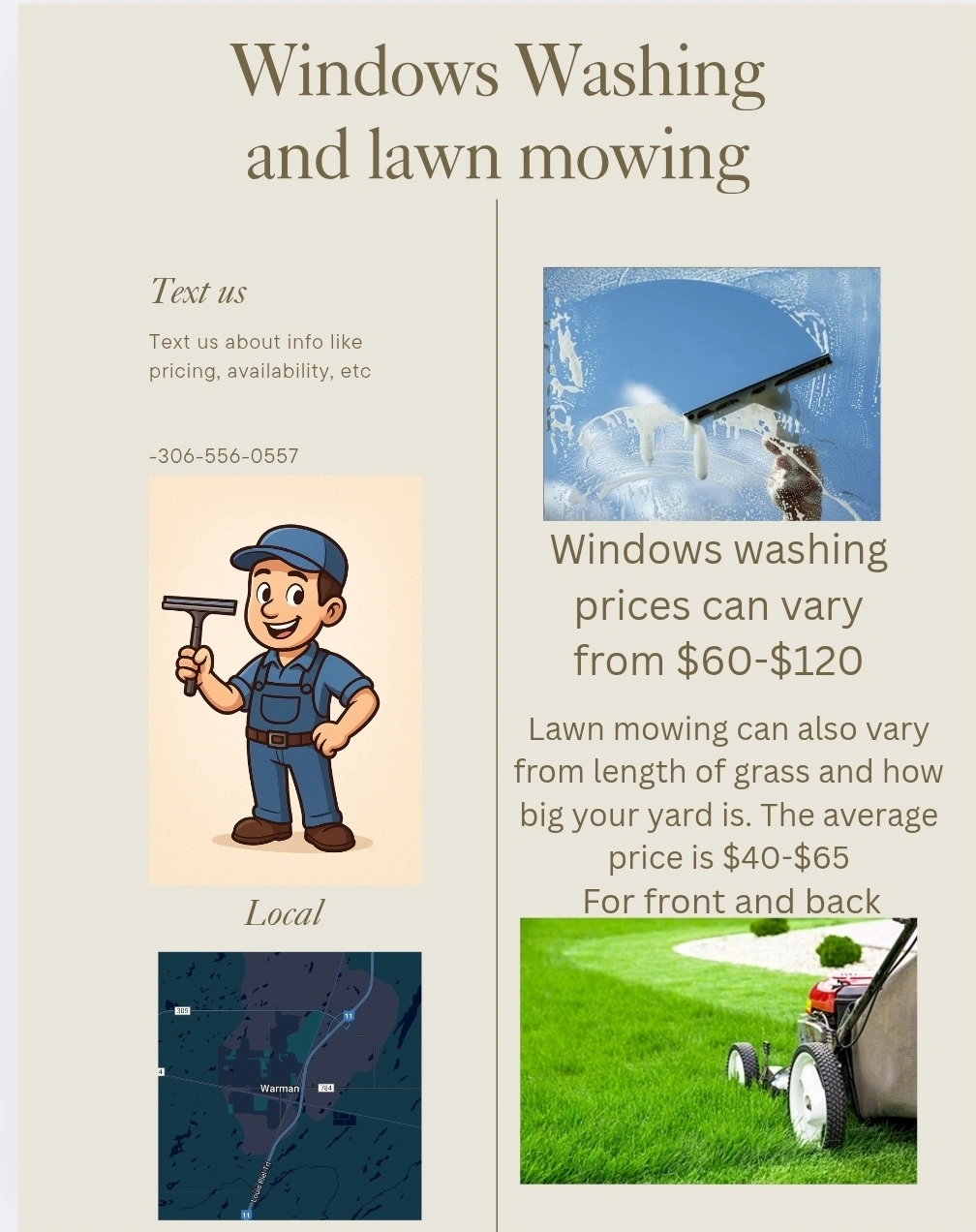 dm us on this app or text us at 306-556-0557