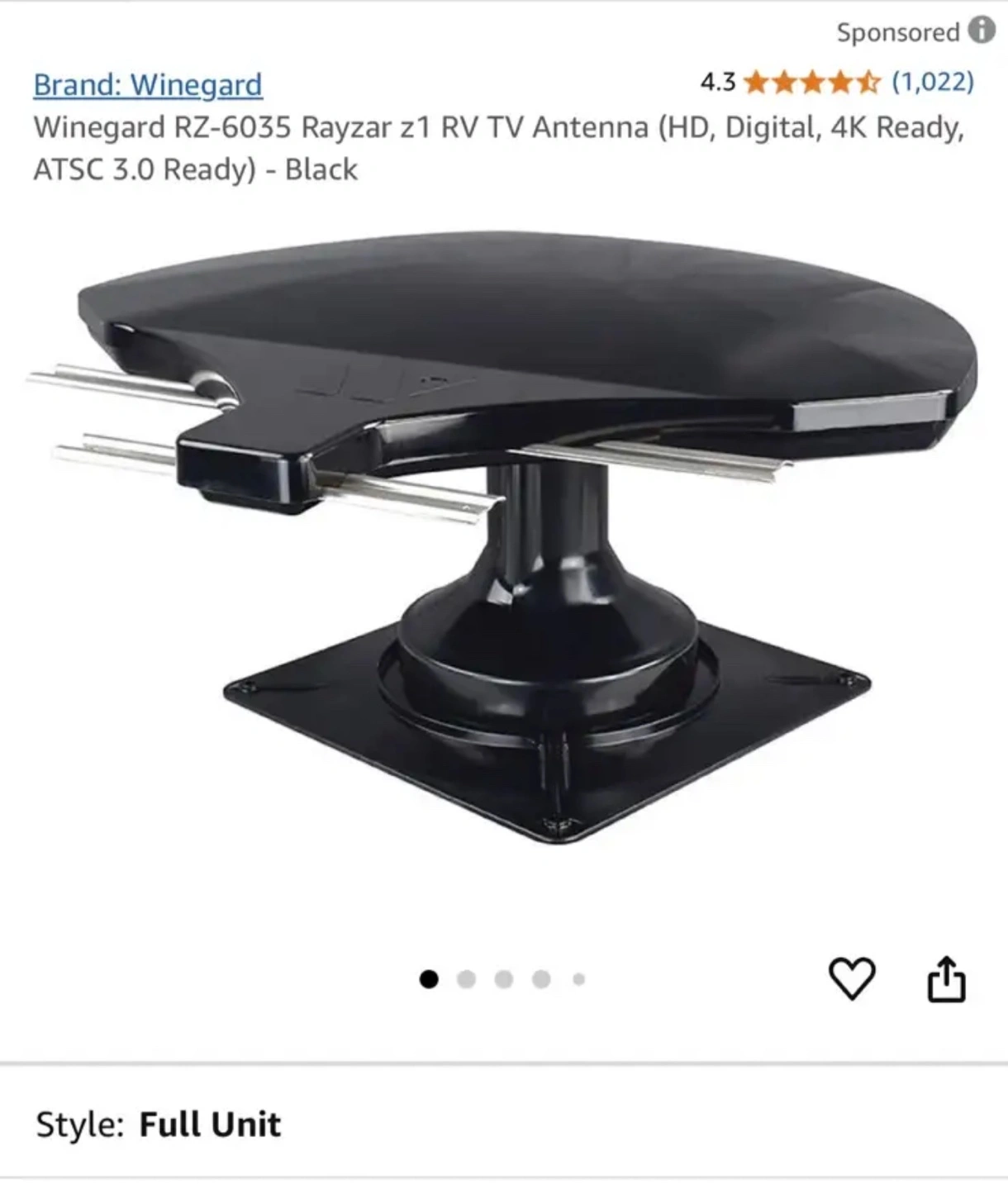 Winegard RZ-6035 Rayzar z1 RV TV Antenna (HD, Digital, 4K Ready, ATSC 3.0 Ready) - Black Retail Amazon: $228.92 + tax Walmart white version: $261.25 + tax Asking: $140 New never used in box Was missing terminals and 2 black screw added 4 screw for options and 2 terminals. Screws are for black wall mount not the dish Pick Up Waterdown Area