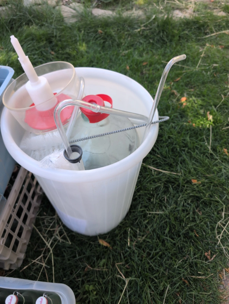I'm selling a collection of winemaking equipment. It includes various items such as glass carboys, tubing, and other accessories used in the winemaking process. Perfect for anyone looking to start or expand their home winemaking setup!