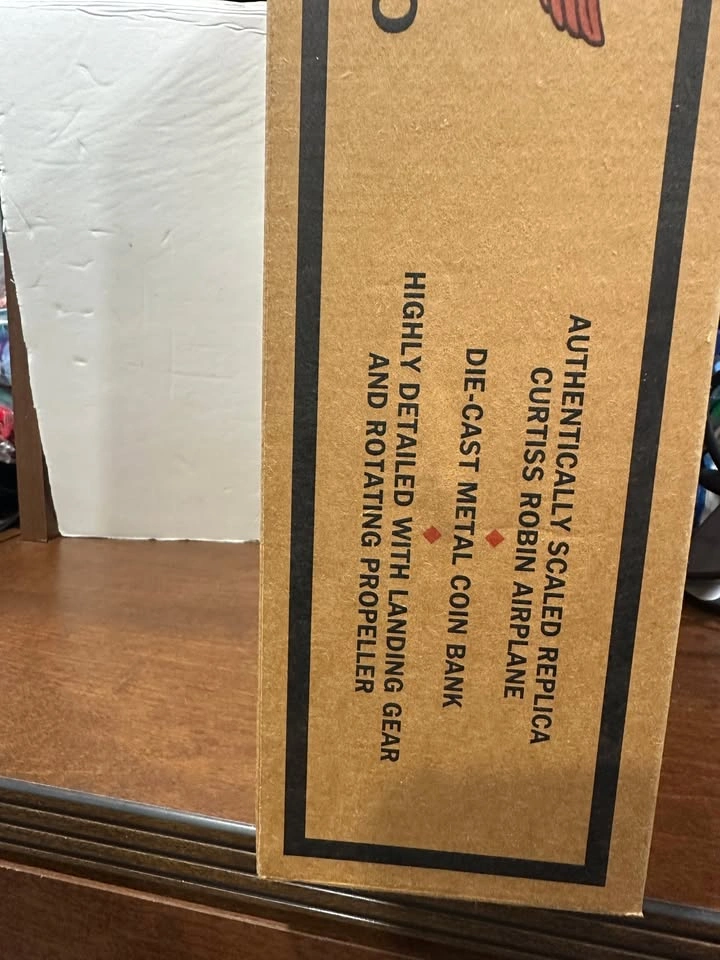 Authentic scaled replica of the Curtiss Robin Airplane, made by Ertl Collectibles, stock number H122 (©1998). This die-cast metal coin bank features: ✈️ Rotating propeller ✈️ Detailed landing gear ✈️ Classic red and silver design ✈️ “Wings of Texaco” branding ✈️ Coin slot and stopper intact (drop it in the top and get them out on the bottom - instructions included) 📦 In excellent vintage condition. A must-have for collectors of aviation memorabilia or Texaco nostalgia. 📍 Pickup only – Pelham Road, St. Catharines 🚗 First come, first served – No holds. Item goes to the first person able to arrange pickup with payment. 📦 Porch pickup available with e-transfer (not responsible for missing items if you choose this option) 📅 Available most Tues/Wed evenings, Fridays after 1 PM, and weekends by arrangement