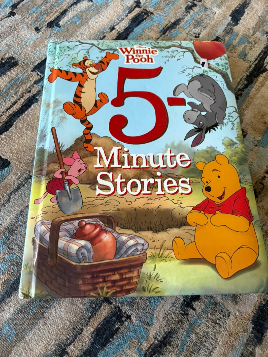 Selling a Winnie the Pooh 5-Minute Stories book! It's a collection of stories that are perfect for bedtime, story time, or any time. Recommended for ages 3 and up. The book shows some wear on the edges, as shown in the photos. Originally retailed for $13.99 CAD.