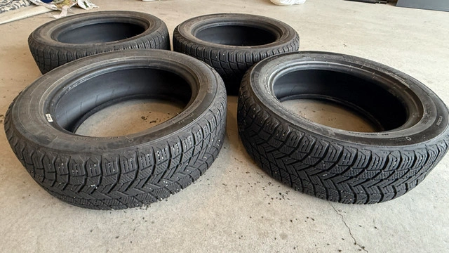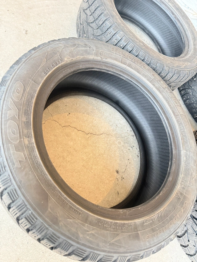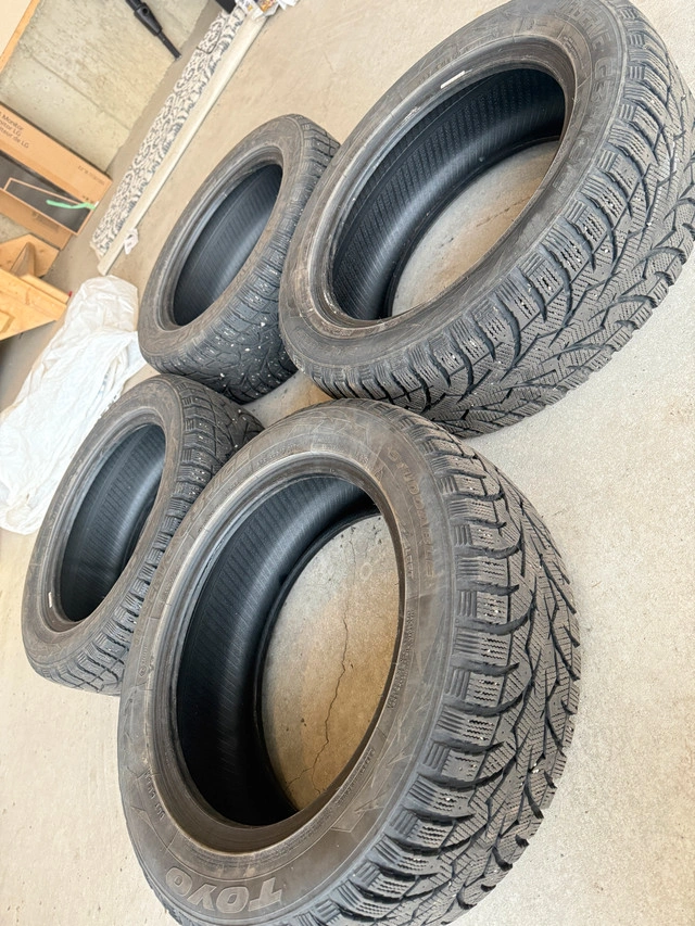 Toyo G3-Ice Winter Tire — 205/55R16 91T Premium Toyo Observe G3-Ice winter tire — trusted for strong grip on snow and ice Size: 205/55R16 Load & Speed Rating: 91T Condition: Used lightly, still has excellent tread depth Usage: One winter season only, always stored indoors Can be studded (factory stud holes) Reason for selling: No longer fits current vehicle Heavy-Duty Winter Floor Mats (Sedan Size) Universal fit for most sedans (e.g. Honda Civic, Toyota Corolla, Hyundai Elantra, etc.) Deep-ridge design traps snow, slush, and salt to protect your car’s interior Easy to clean and non-slip backing Condition: Like new — barely used ✅ Why Buy This Set: Save money on winter essentials — both items barely used! Perfect combo for anyone preparing for the snowy season Reliable quality from Toyo and durable winter mat design Price & Pickup: Take both together for $570 or make me an offer Cash or e-transfer accepted.