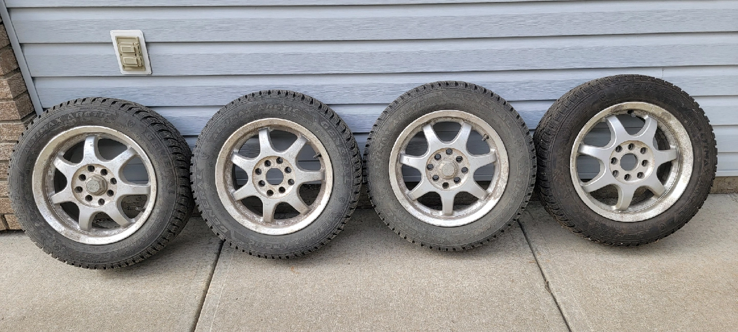 Selling a set of 4 used winter Tires with rims off my Toyota Corolla. Only used it for 2 winters. Has good tread - approx 70% Cleaning out garage and tires must go. $120 obo.