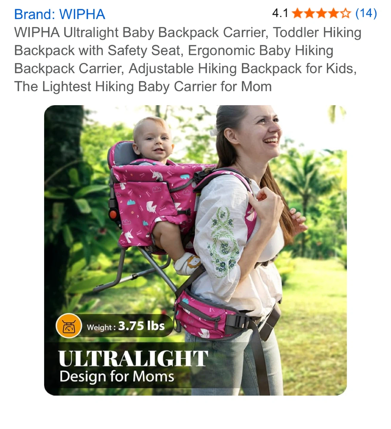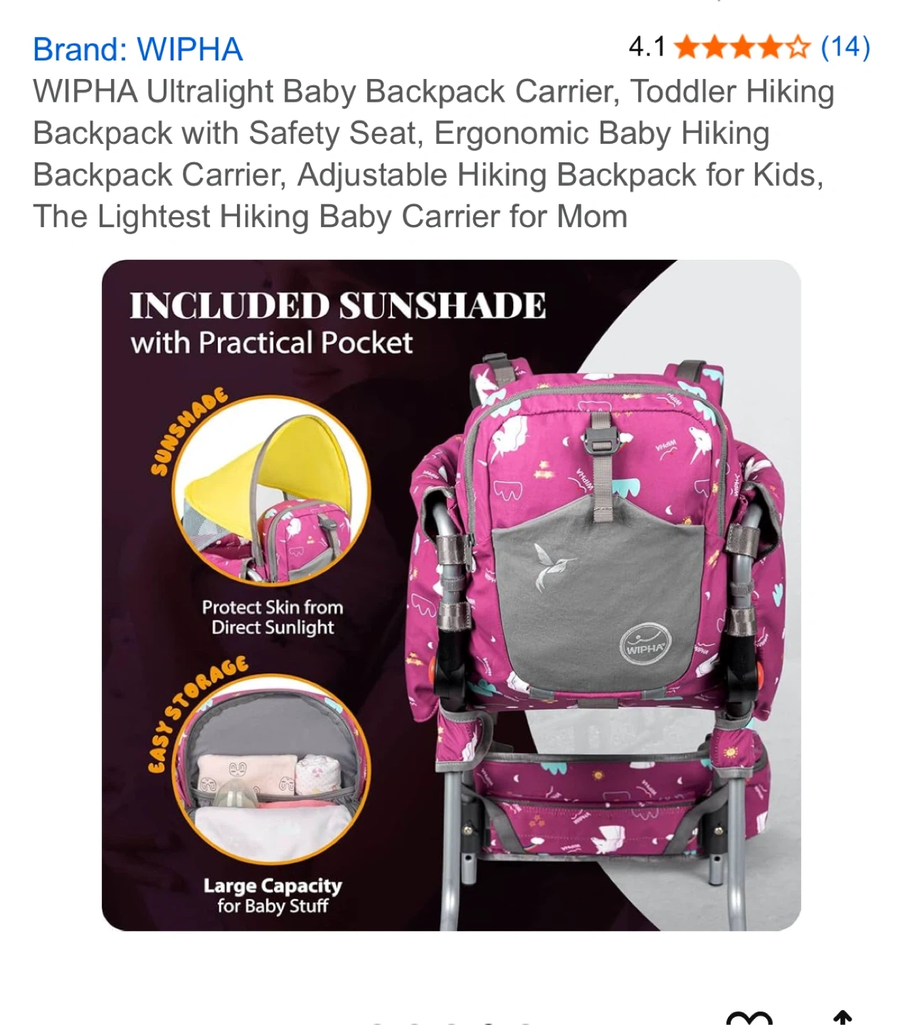 Looking to make hiking with your little one easier? This WIPHA ultralight baby backpack carrier is perfect for toddlers! It features a safety seat, adjustable height, and is designed for ergonomic comfort. The carrier also includes a sunshade with a practical pocket and a large capacity for baby stuff. It's lightweight, weighing only 3.75 lbs, and has a padded waist belt for extra comfort for moms