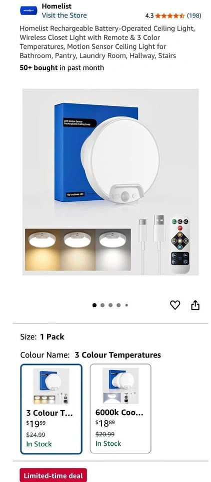 New, open box, Wireless Closet Light with Remote & 3 Color Temperatures, Motion Sensor Ceiling Light for Bathroom, Pantry, Laundry Room, Hallway, Stairs Retails for $19.99 on sale on Amazon Asking $10 Pick up near Coxwell and Danforth