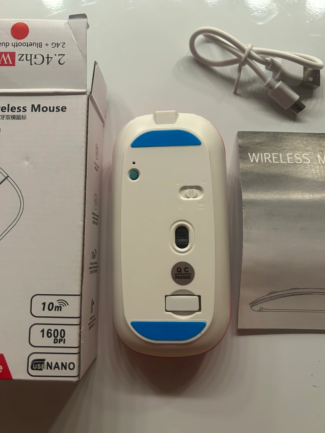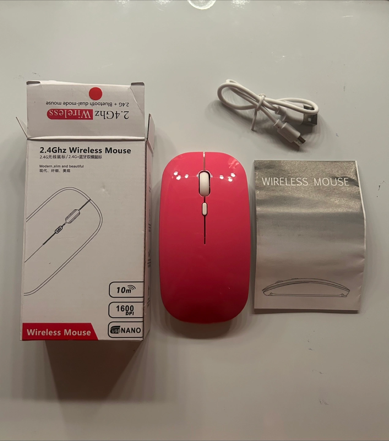Selling a wireless mouse in pink! It comes with its original box, a charging cable, and the user manual.