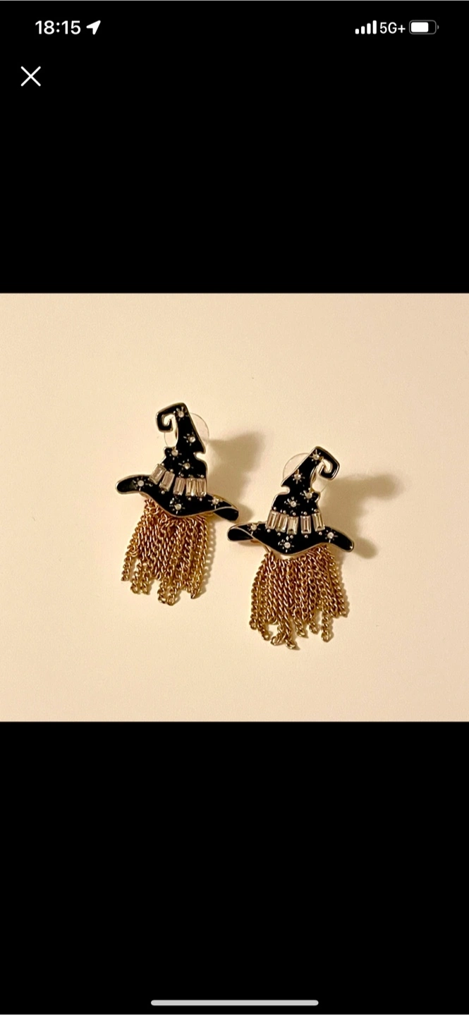 witch hat earrings. Gold chain detail. Cute Halloween jewelry. Smoke free/pet free home Pick up only Cash only
