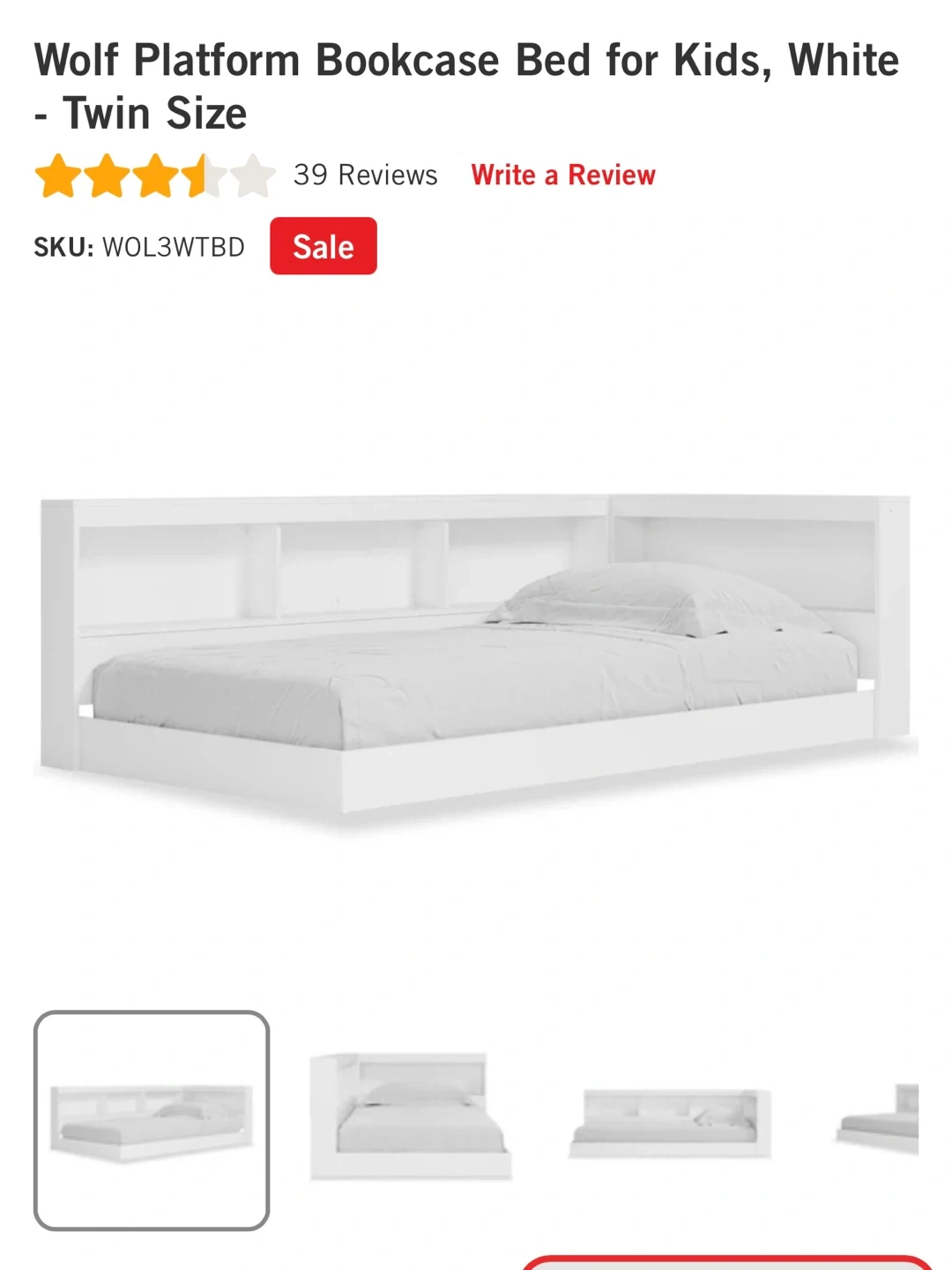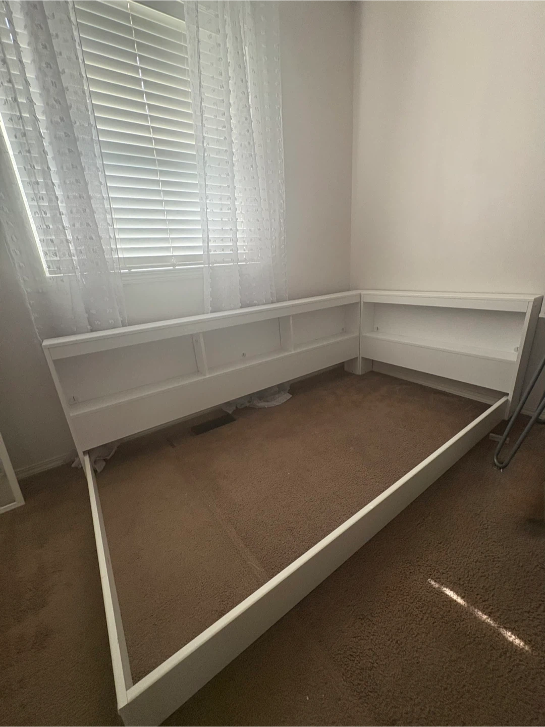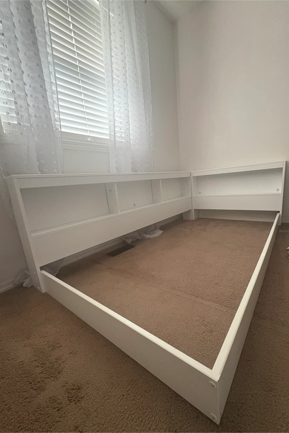 Selling a Platform Bookcase Bed in twin size. It's a great bed for kids! The bed frame is white and features a bookcase headboard for extra storage and display space..cross posted and price is negotiable