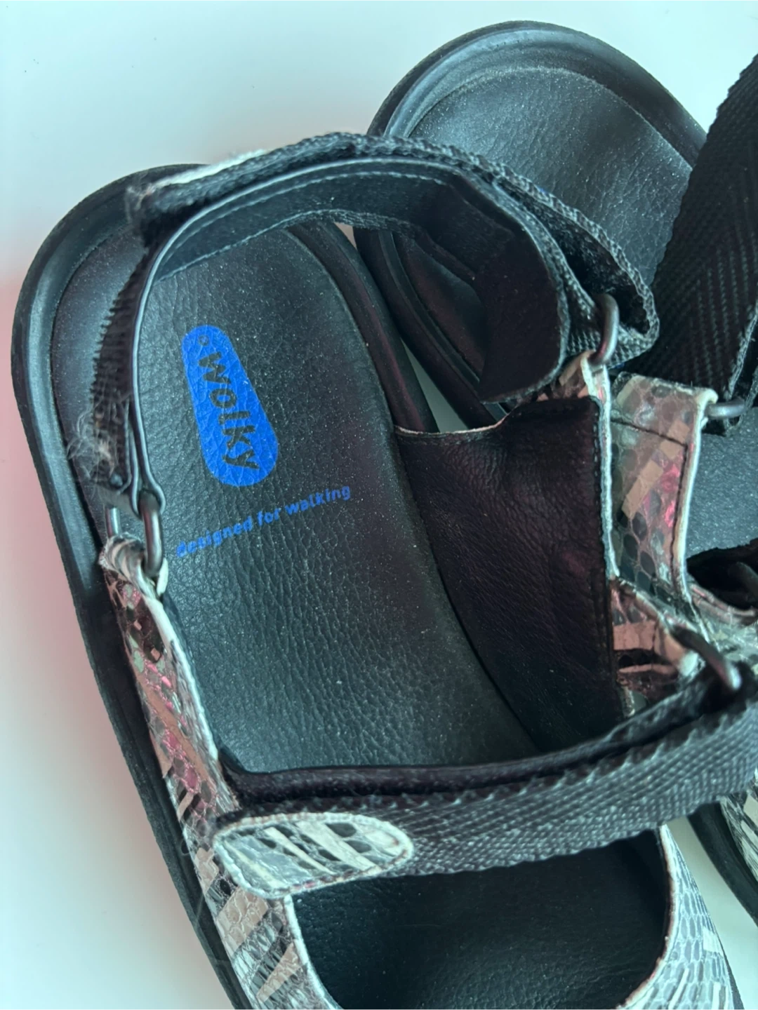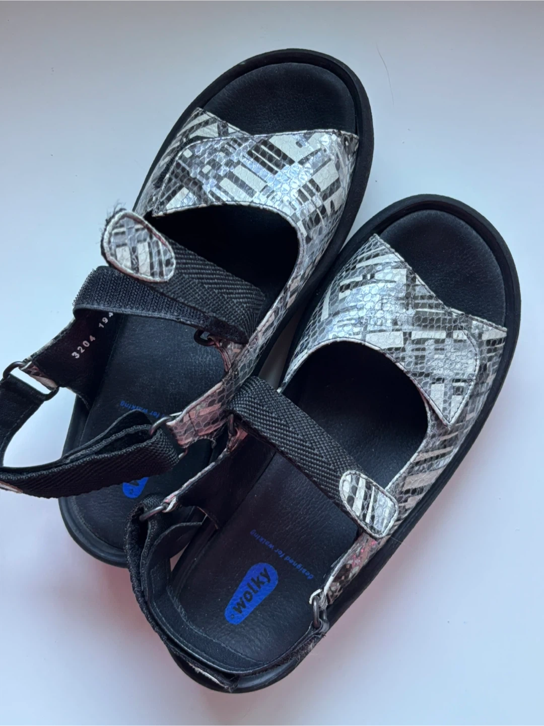 These Wolky sandals are in great shape and ready for a new home! They feature a stylish black and white snakeskin-like pattern. The size is 38.