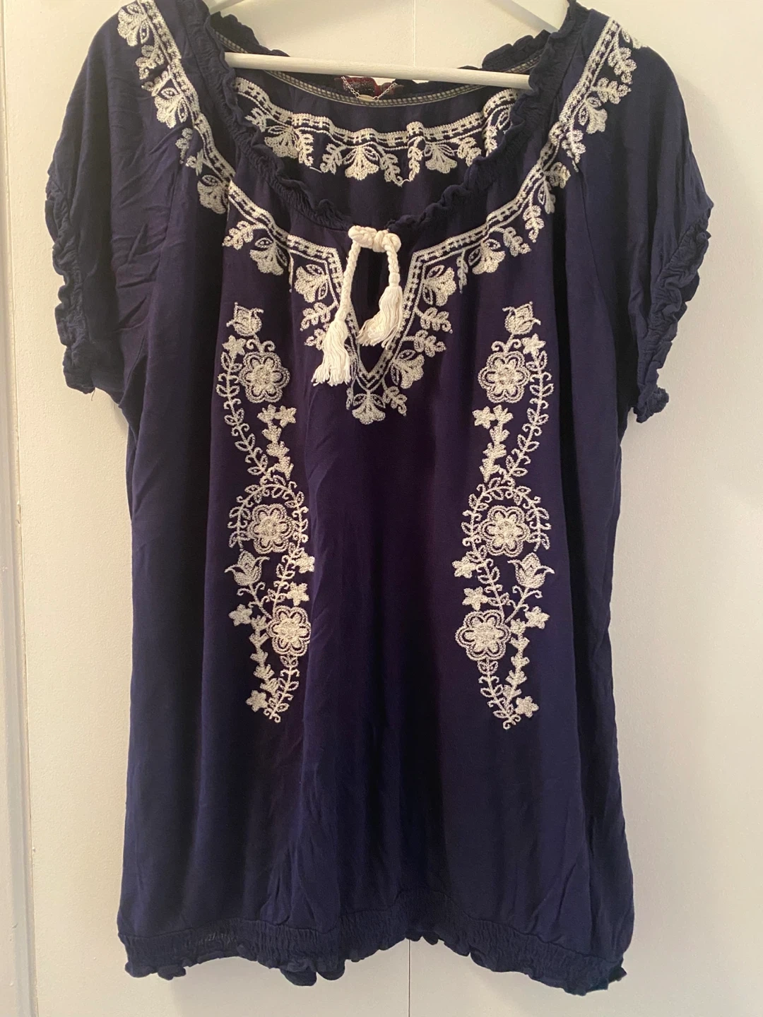 •Excellent condition, clean, no breakage •Brand:Devoted Luxury Apparel •Size: Large (see pic) •beautiful navy blue colour with white embroidery •Material: 100% Viscose •Perfect for any occasion, comfortable to wear •smoke-free, pet-free environment 🔽🔽🔽🔽🔽🔽🔽🔽🔽🔽🔽🔽🔽 LOCATION: Pick up Jane & Lawrence Area