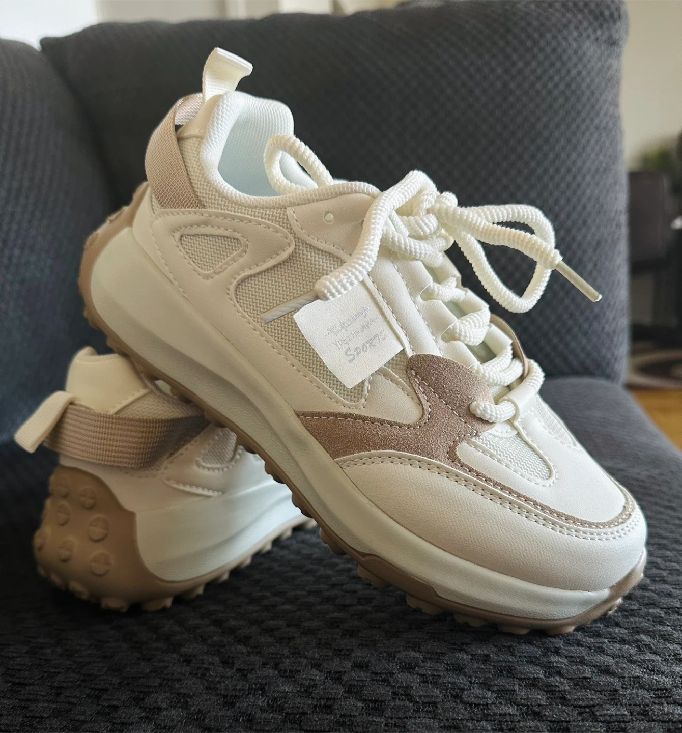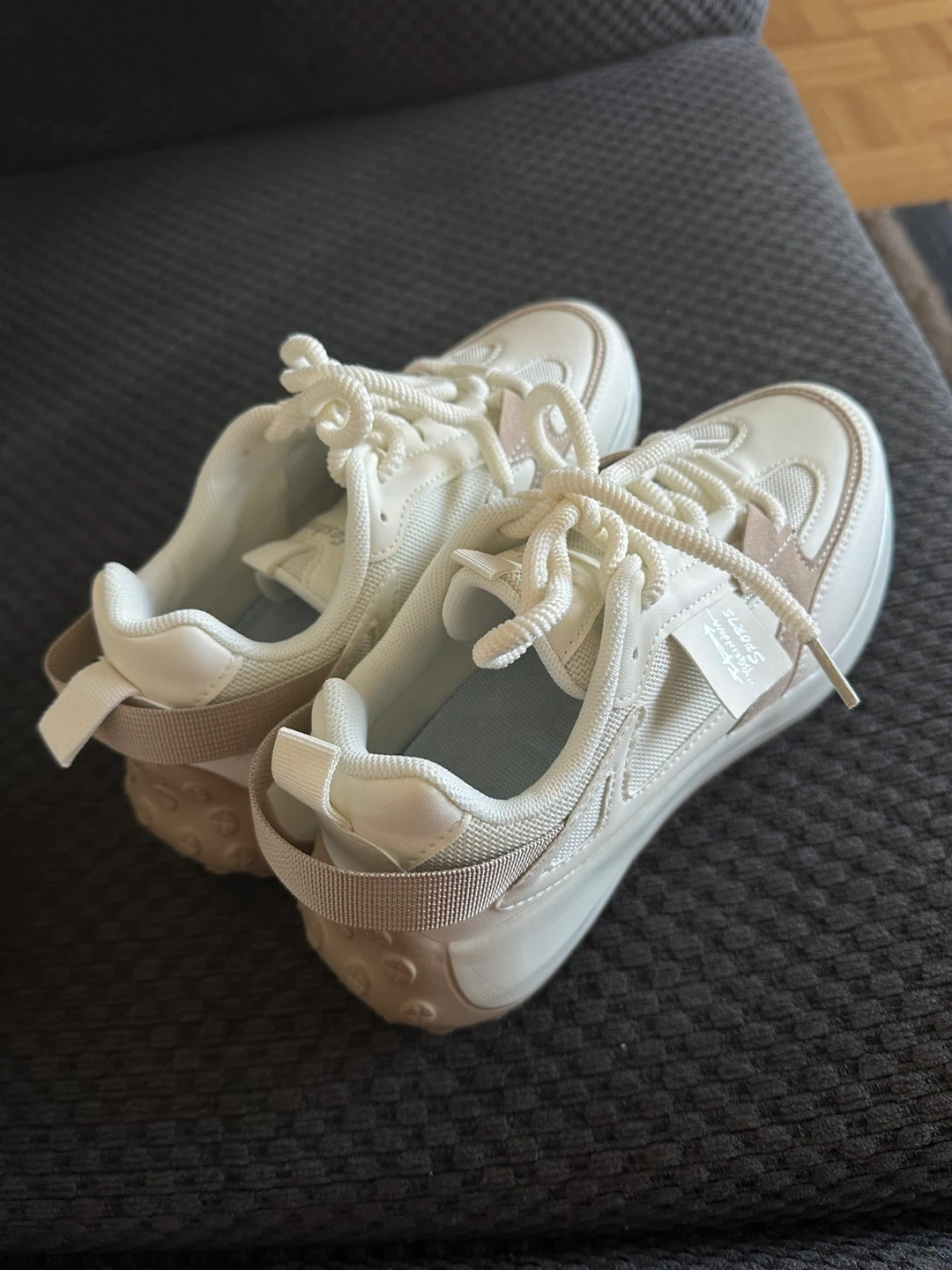 These women sneakers feature a stylish design with a cushioned sole for ultimate comfort and support. These sneakers are brand new, perfect for adding a trendy touch to your casual outfits! Excellent for walking and running! Additional specs: * Colour: Off-white/Beige * Style: Chunky * Closure: Lace-up * Size: US6.5