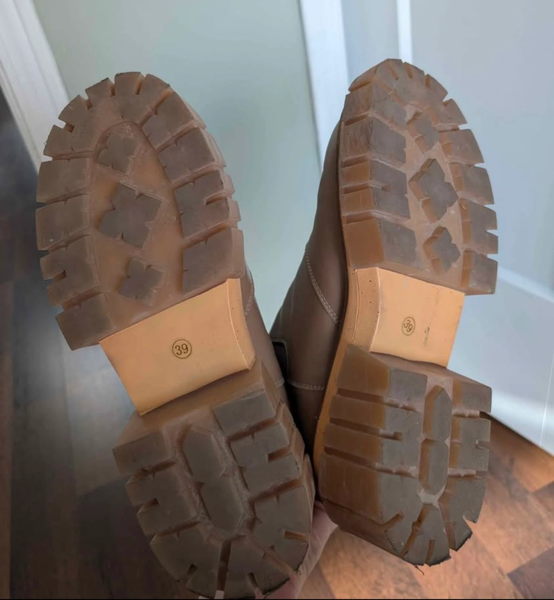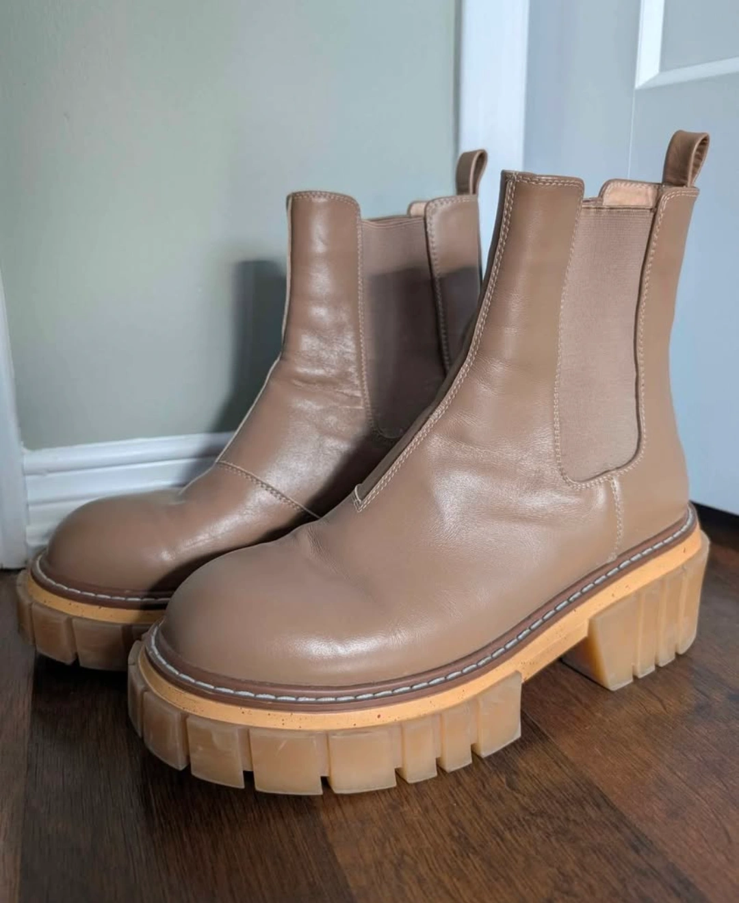 Pair of women's beige leather Chelsea boots. Chunky platform sole. Size 7.5. real leather