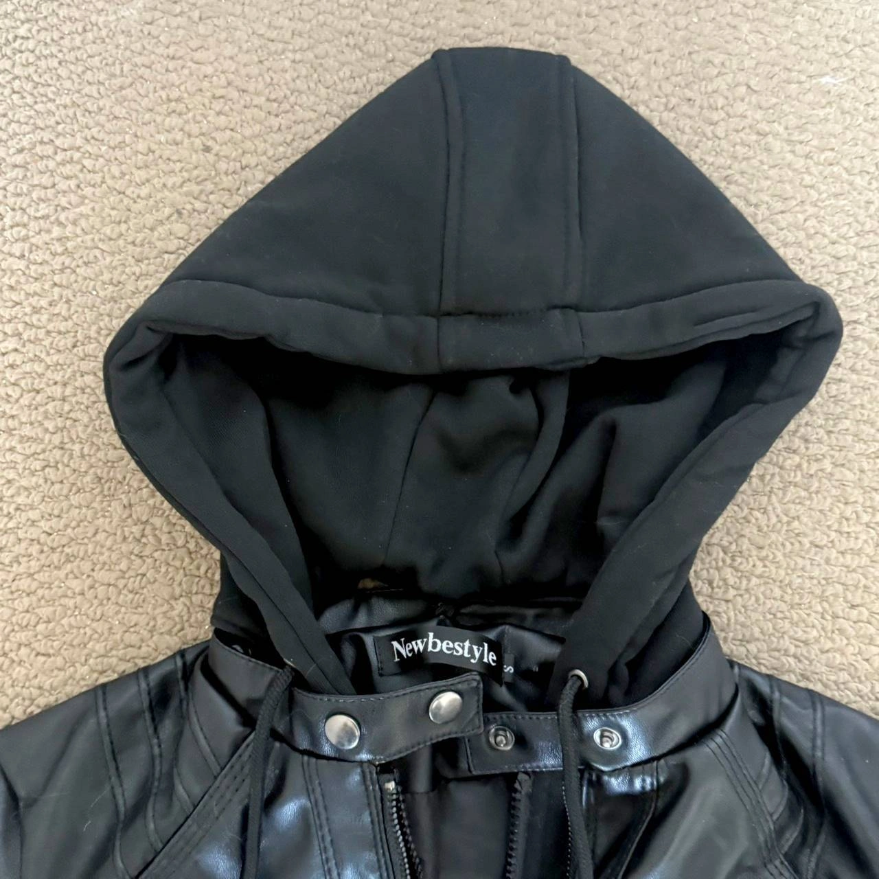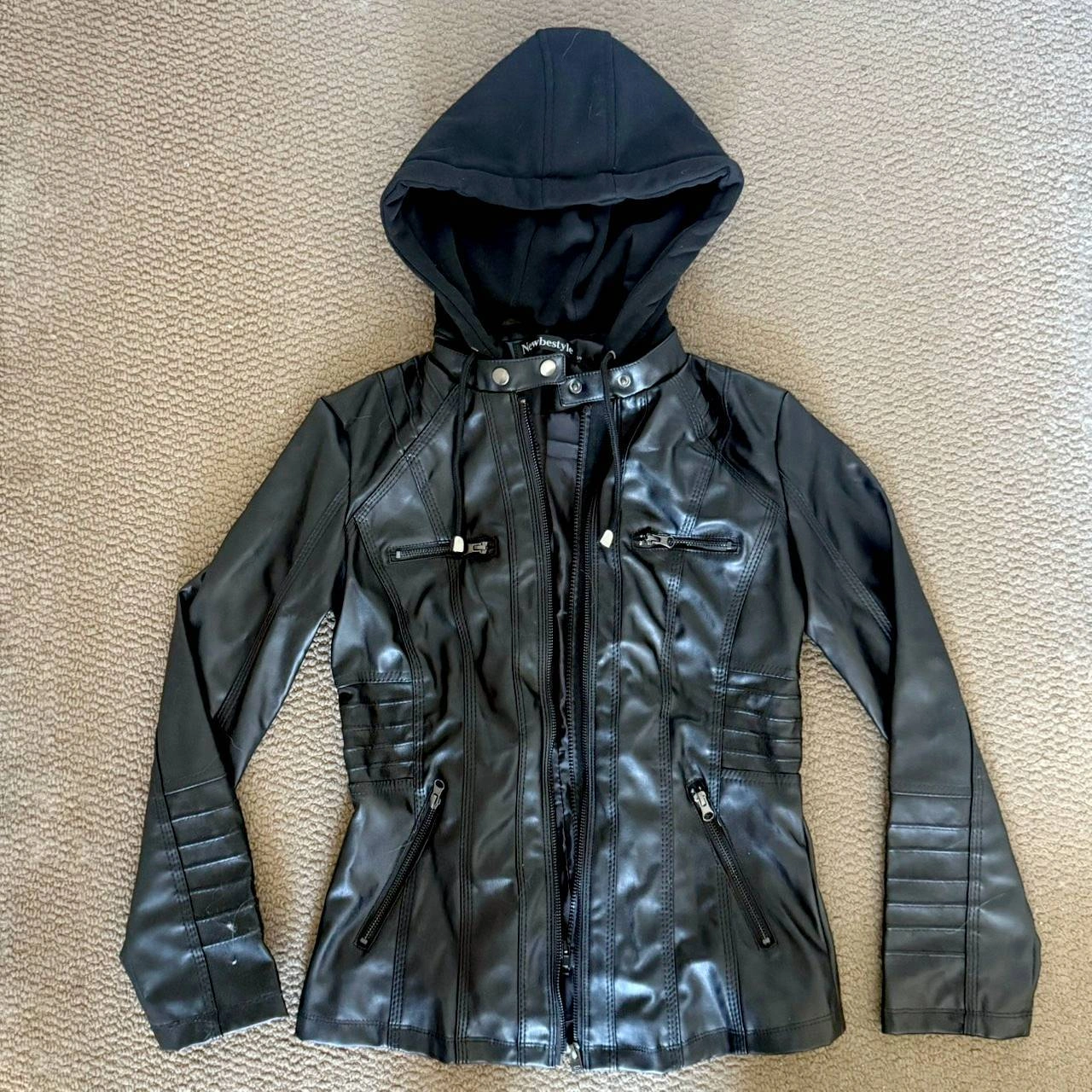 Women’s Black Faux Leather Jacket w/ Detachable Hood – (Size S)
