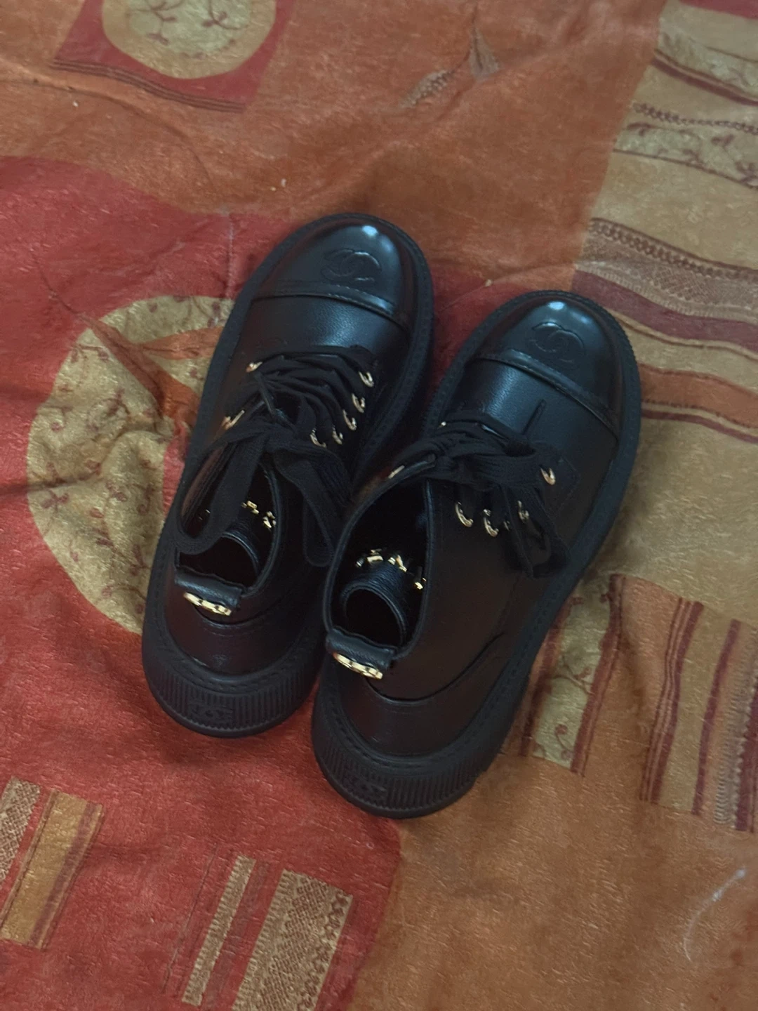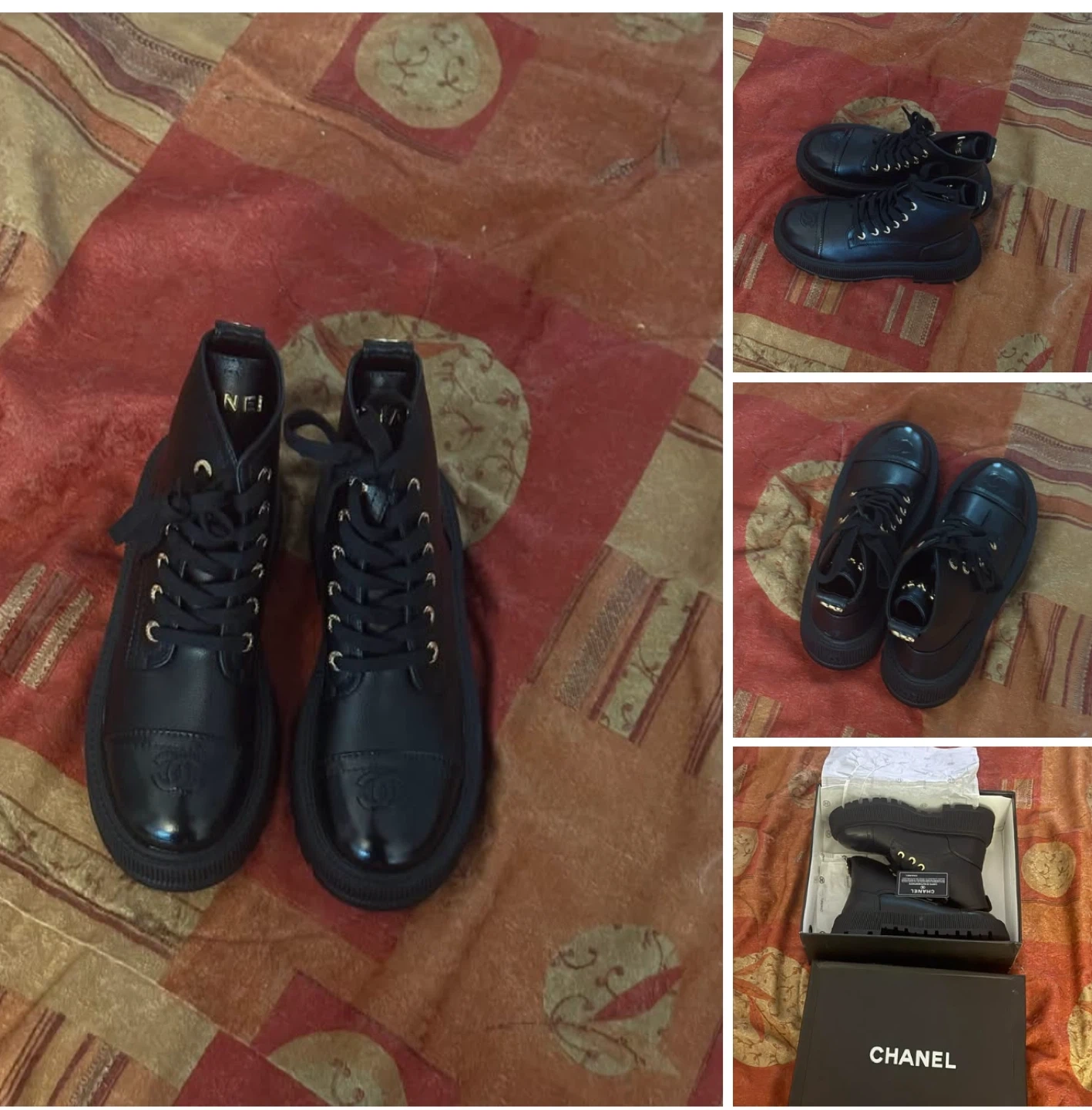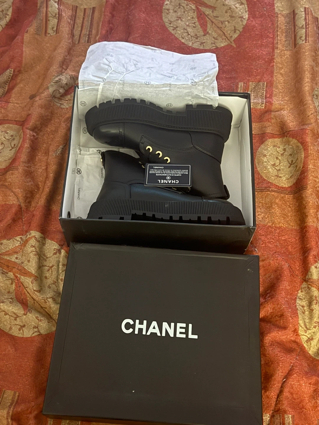 Selling a pair of women’s ankle boots in black leather. They are in good condition and feature the iconic Chanel logo. These boots are stylish and perfect for any wardrobe! Size 7 US