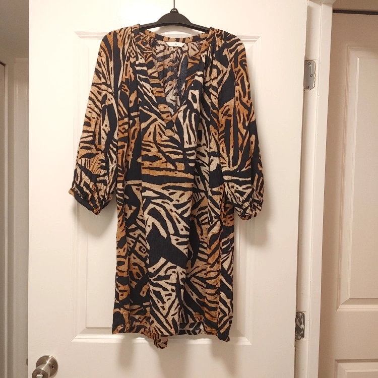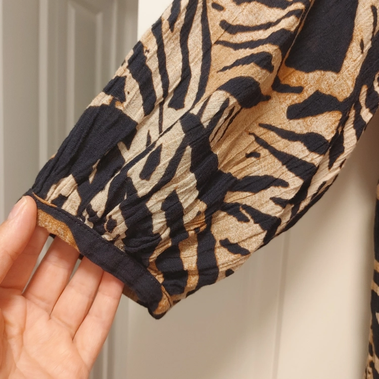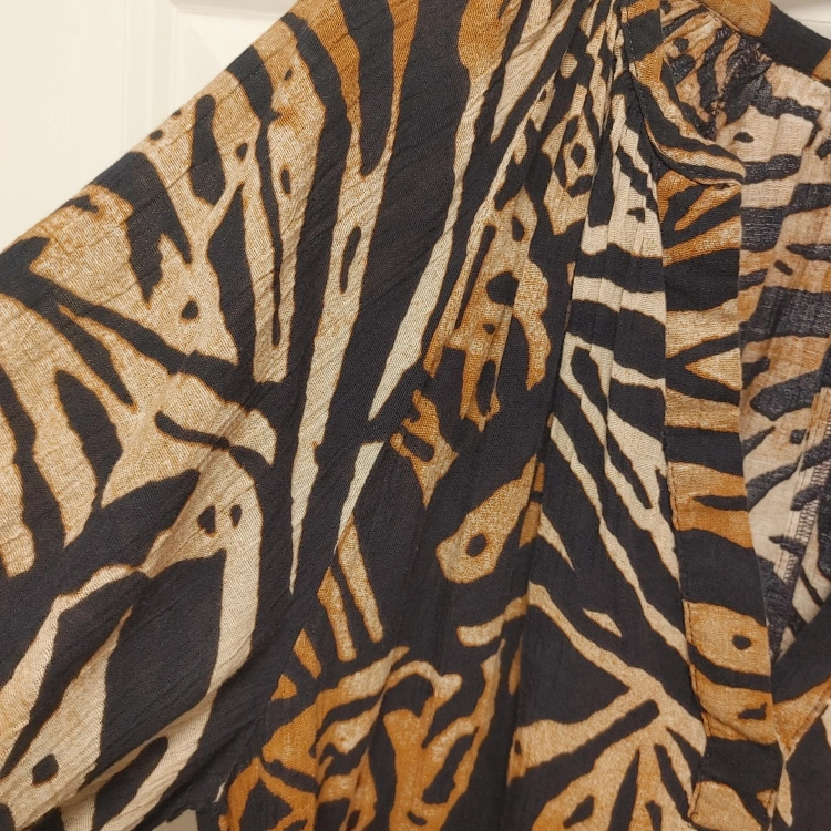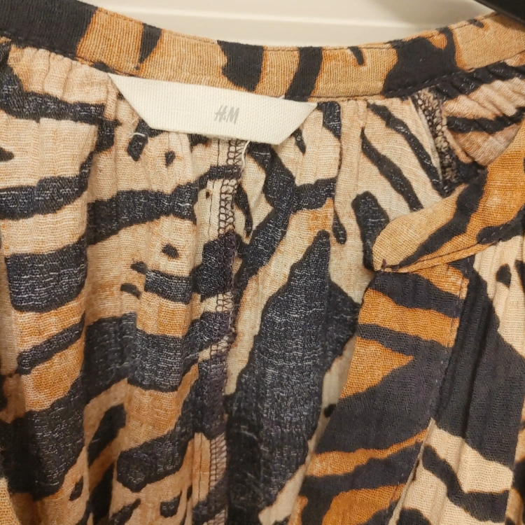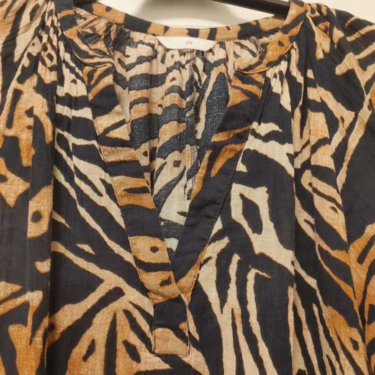 Selling a cute H&M blouse with a unique print Long sleeves and a comfortable fit. Perfect for adding a touch of wild style to your wardrobe