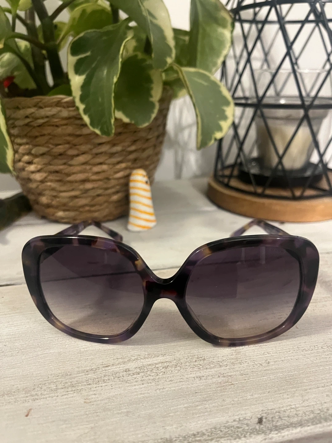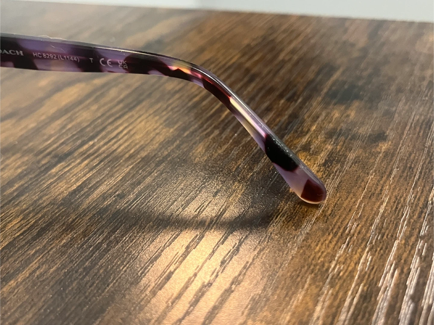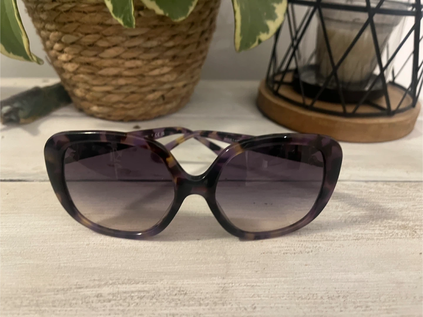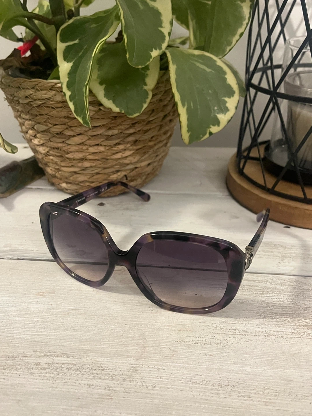 These Coach sunglasses are in great condition only worn a few times. Some scratches on arm of sunglasses (see pictures). The model number is HC 8292 (L1144). They feature a stylish purple tortoise shell pattern.