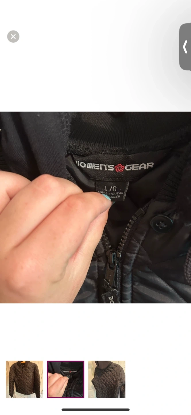 Women’s gear brand. Black quilted zip up hooded bomber style jacket. Size large. Brand new condition