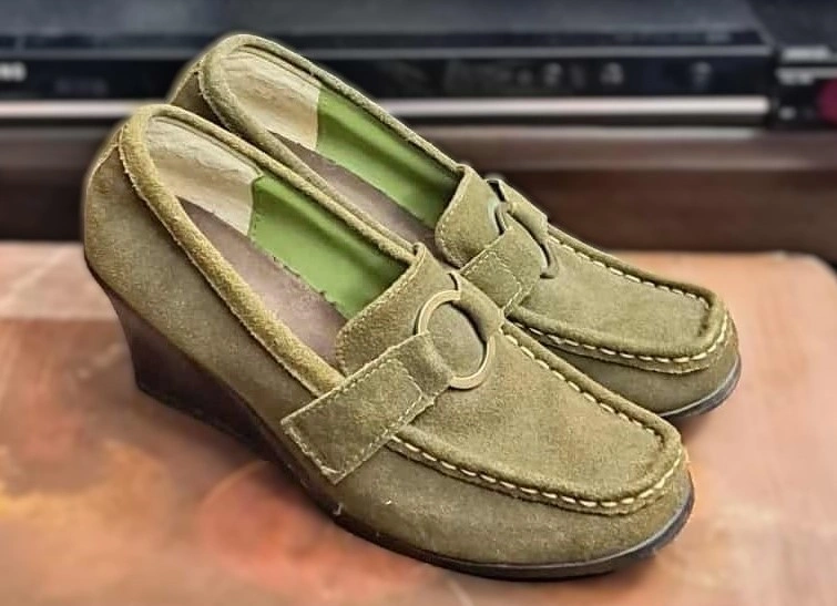 A classic genuine leather women's wedge loafer with style. Easy to match with any wardrobe and comfortable for wear everywhere. In excellent condition. Well kept and sanitized. Heels 3" high