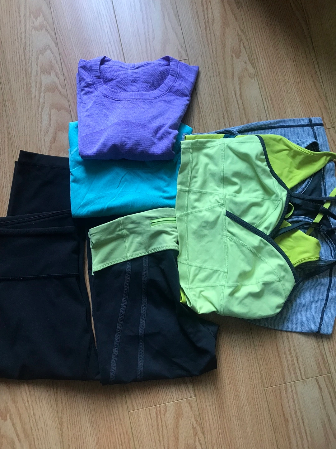 7 pieces of women’s Lululemon 2 crop pants 2 sports tops 2 Swiftly Tech t-shirts 1 top of