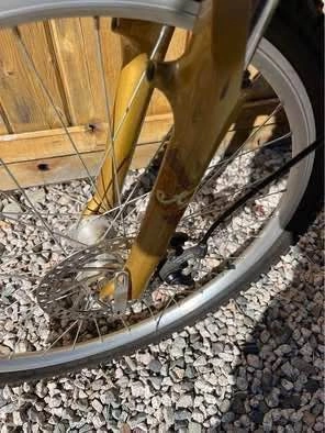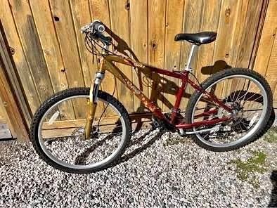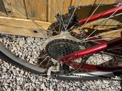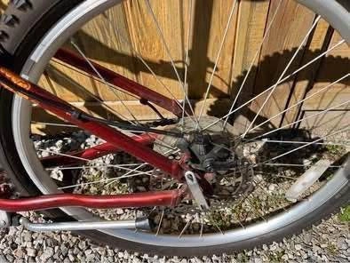 Women’s medium size bike with disk brakes and 24 gears. 16” frame, sticker says medium size for women 5’6” to 5’9”. 26” wheels.