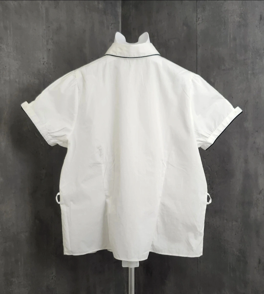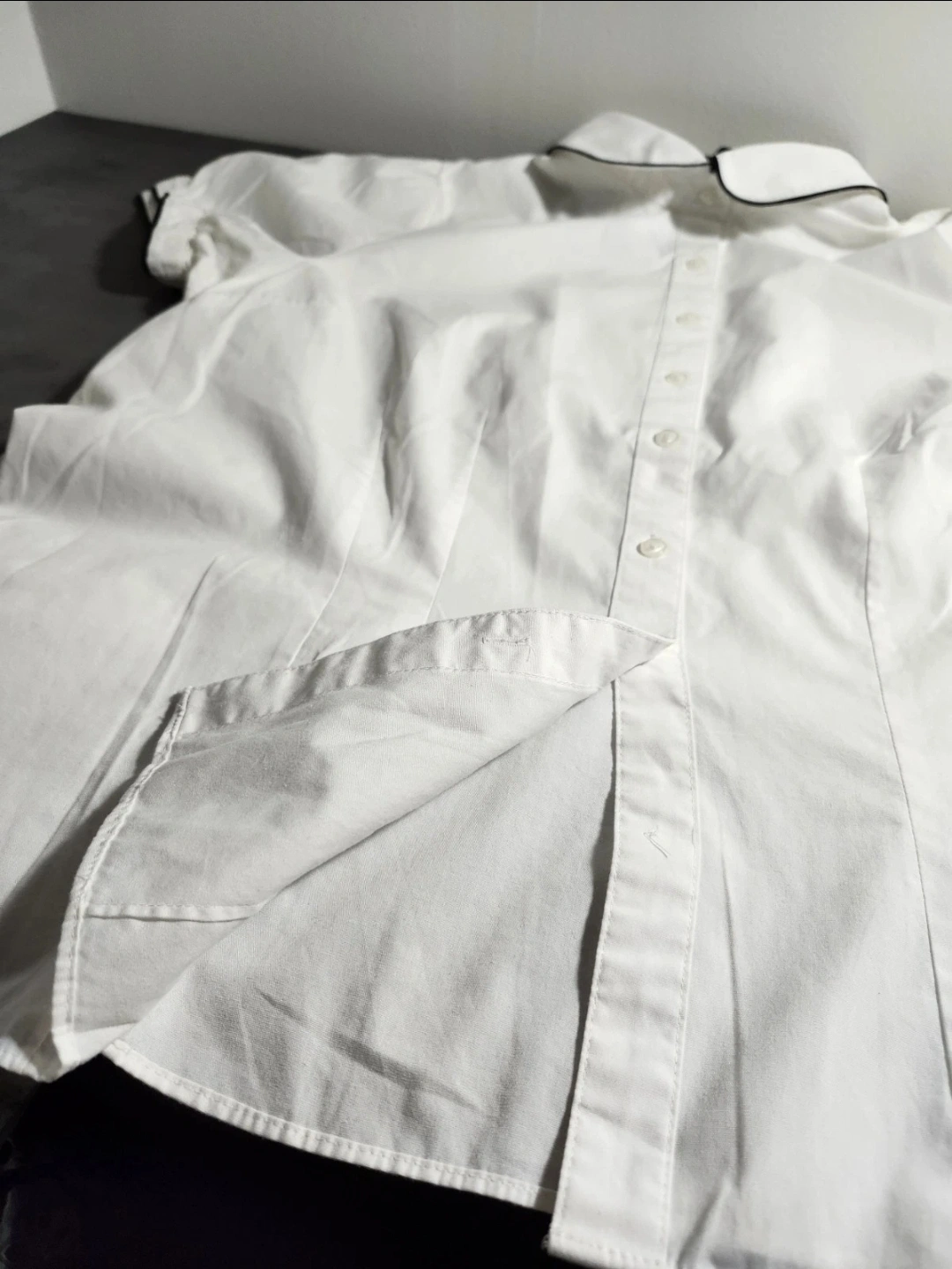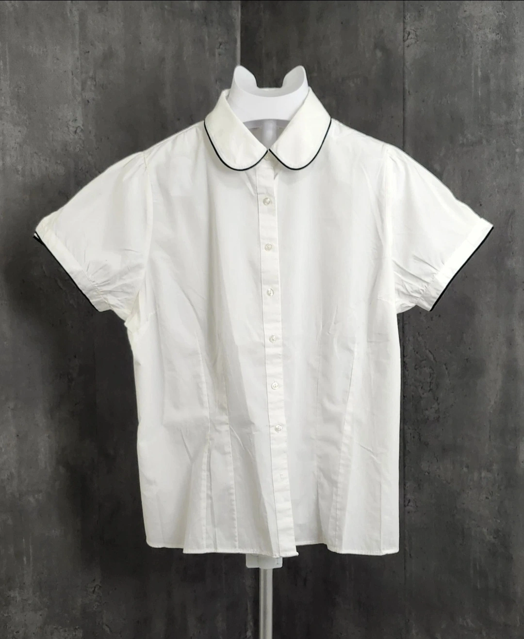 PRE-LOVED (Used - Like New) Papaya Classic Collection Rounded Flat Collar Short Sleeve Belted Shirt XXL Material: Cotton and Polyester Measurements taken while laying flat (side to side): Arm Hole - 10" Bust/Chest (Pit to Pit) - Biceps - 8" Collar/Neck - 18" (unbuttoned) Hem - 24" Length: Front - 26" , Back - 26" Neck to Shoulder - 3.5" Shoulder Width - 15" Sleeve Length: Outseam - 8", Inseam - 2" Waist - 22" Minor Flaws: The bottom (last) button is missing, but a spare is attached to the care tag on the blouse. Designed to be belted (with belt loops), but no accompanying belt. Note: This item was carefully inspected, cleaned, and neatly folded by me, then packed right after the photos were taken to ensure it reaches you in the same great condition as shown. From a non-smoking and pet-free home. This item can only be picked up on weekdays, not weekends. (Sorry.. no Interac or transfers. I only accept CASH for payment) ๐