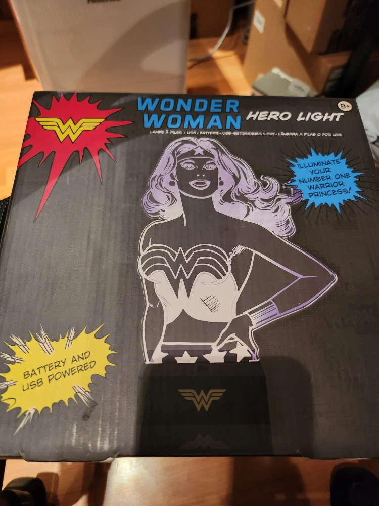 Brand new in box. Never been opened. A Wonder Woman Hero Light, suitable for ages 8 and up! It's battery and USB powered, so it's versatile for different setups. Illuminate your number one warrior princess!