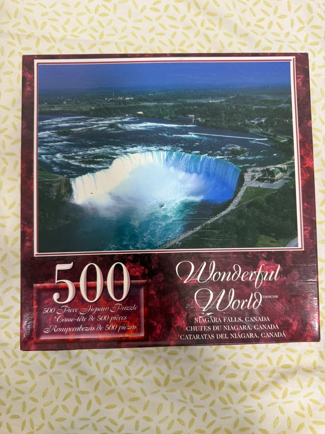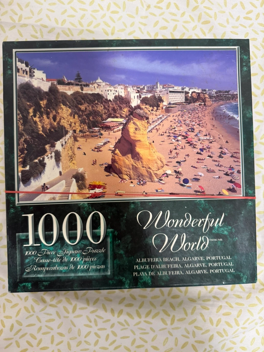 Gifting / trading a set of jigsaw puzzles from the Wonderful World series! It includes a 1000-piece puzzle featuring Albufeira Beach in Portugal and a 500-piece puzzle of Niagara Falls in Canada. Both puzzles are complete and in great shape, ready for a new home.
