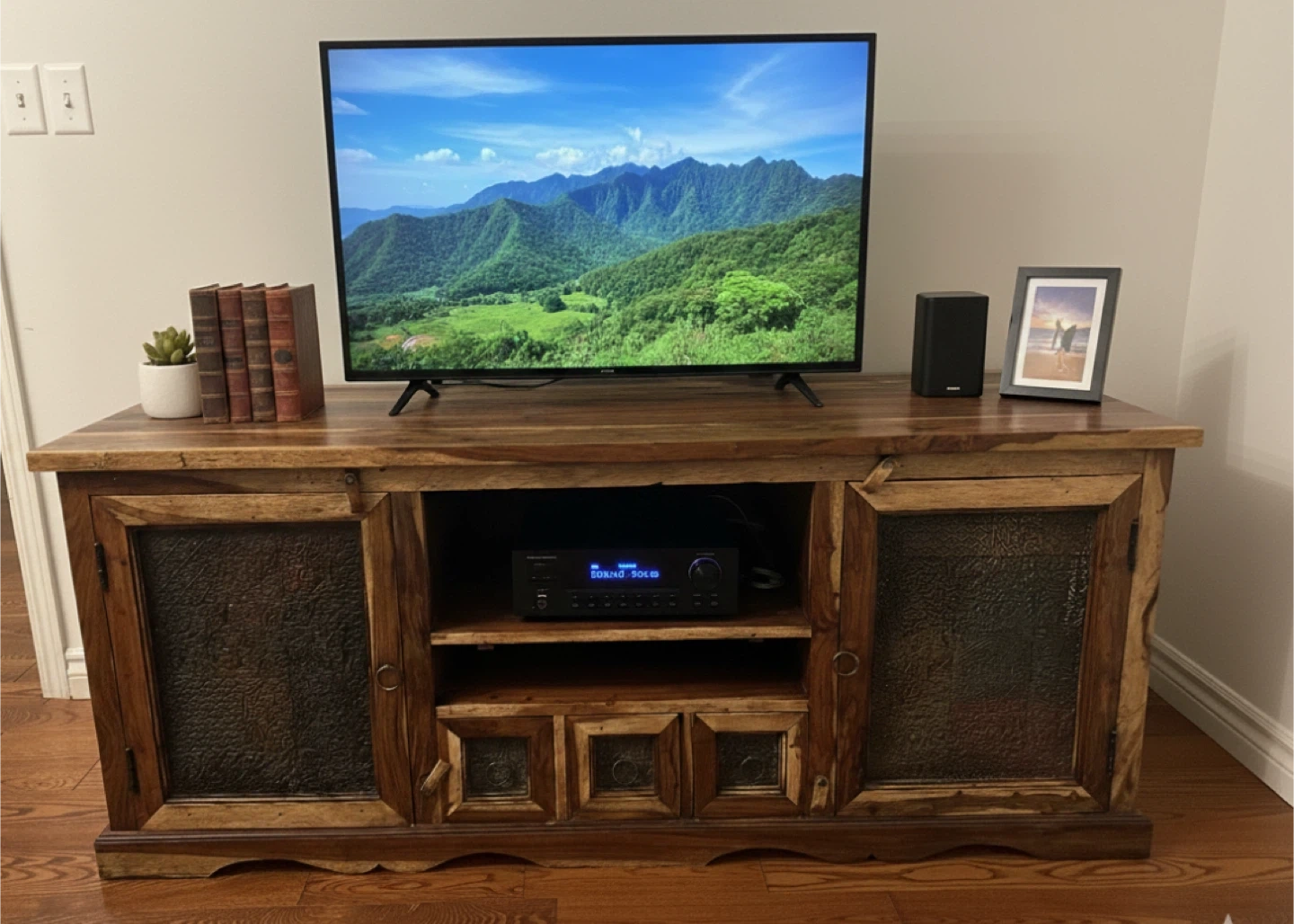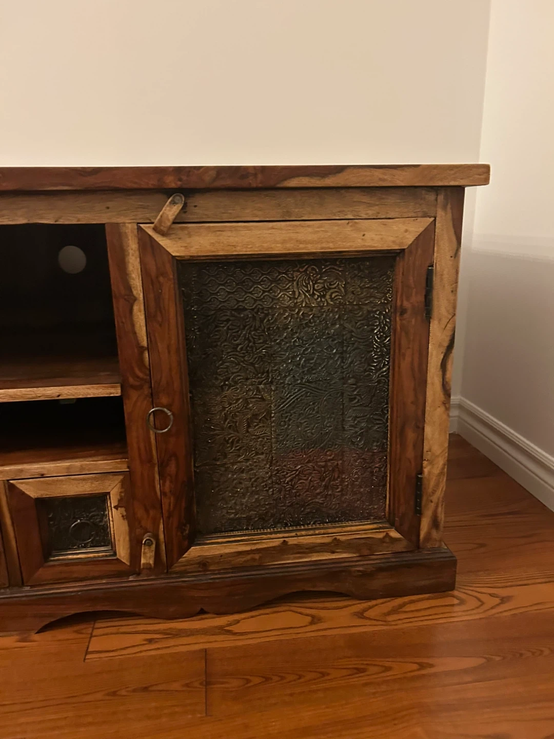 Solid wood TV unit with stone lithography decorative slab. Dimensions : > Length 150cm > Width 60 cm > Height cm Price negociable for serious buyers We have a truck to help with transportation - heavy piece needs 3 men to carry Clark Blvrd & Ferguson intersection - Milton