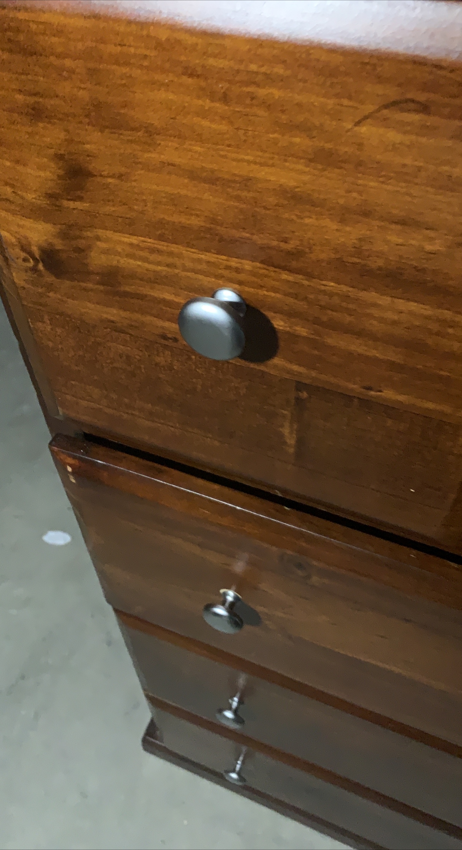 Here's a wooden chest , night stand, and drawer. It has a classic look with silver-tone knobs. Which alone are valued at 4 $ a piece by themselves at Home Depot It's a great piece to add some storage to your home! Great for a child’s/ youth teen bedroom. All 3 pieces for 200$. Check out all the pictures.
