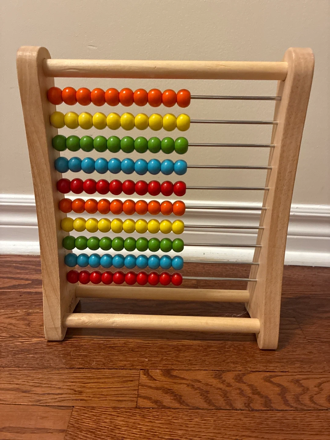 A classic wooden abacus toy with colourful beads! Great for helping kids learn to count and develop their fine motor skills. It's in excellent condition and ready for a new home