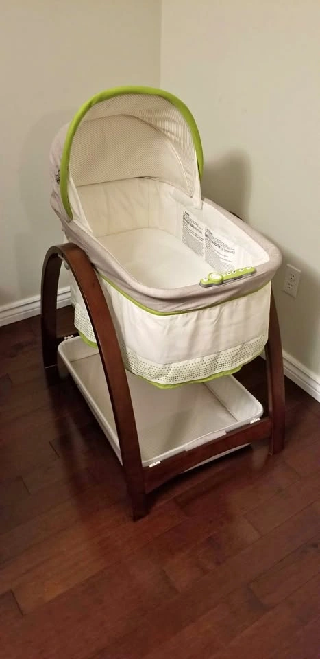 Wooden bassinet in excellent condition. Note that sound and motion functionality does not work.