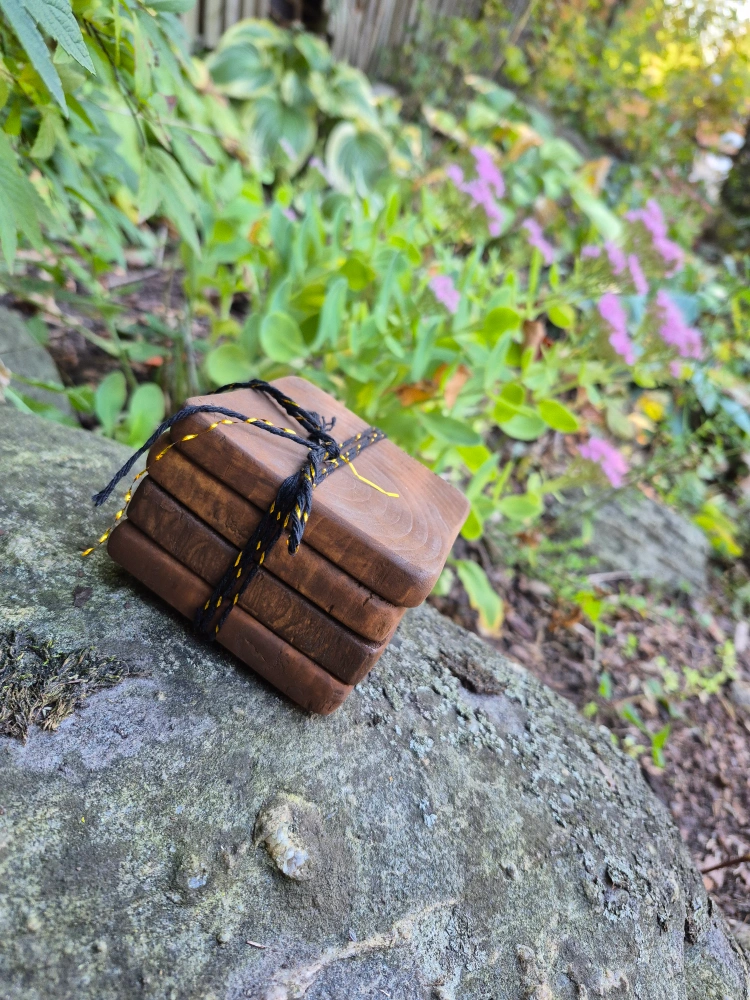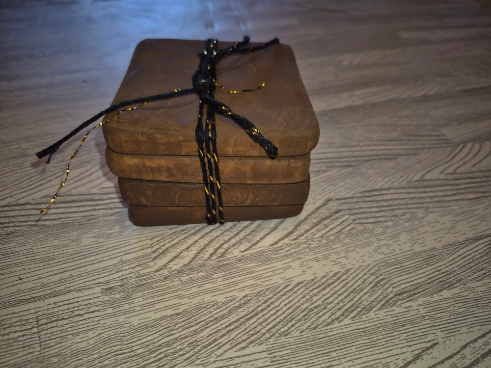 Selling sets of 4 hand crafted wooden coasters. They're tied together with a decorative string. Perfect for protecting your furniture with a touch of rustic charm. (Delivery within reason) Stain Options Dark Light No stain